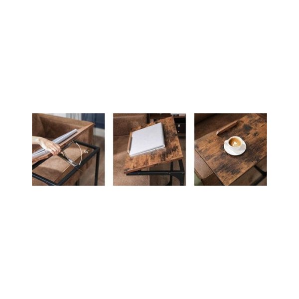 Bijzettafel – – Verstelbaar oppervlak – Vintage bruinzwart