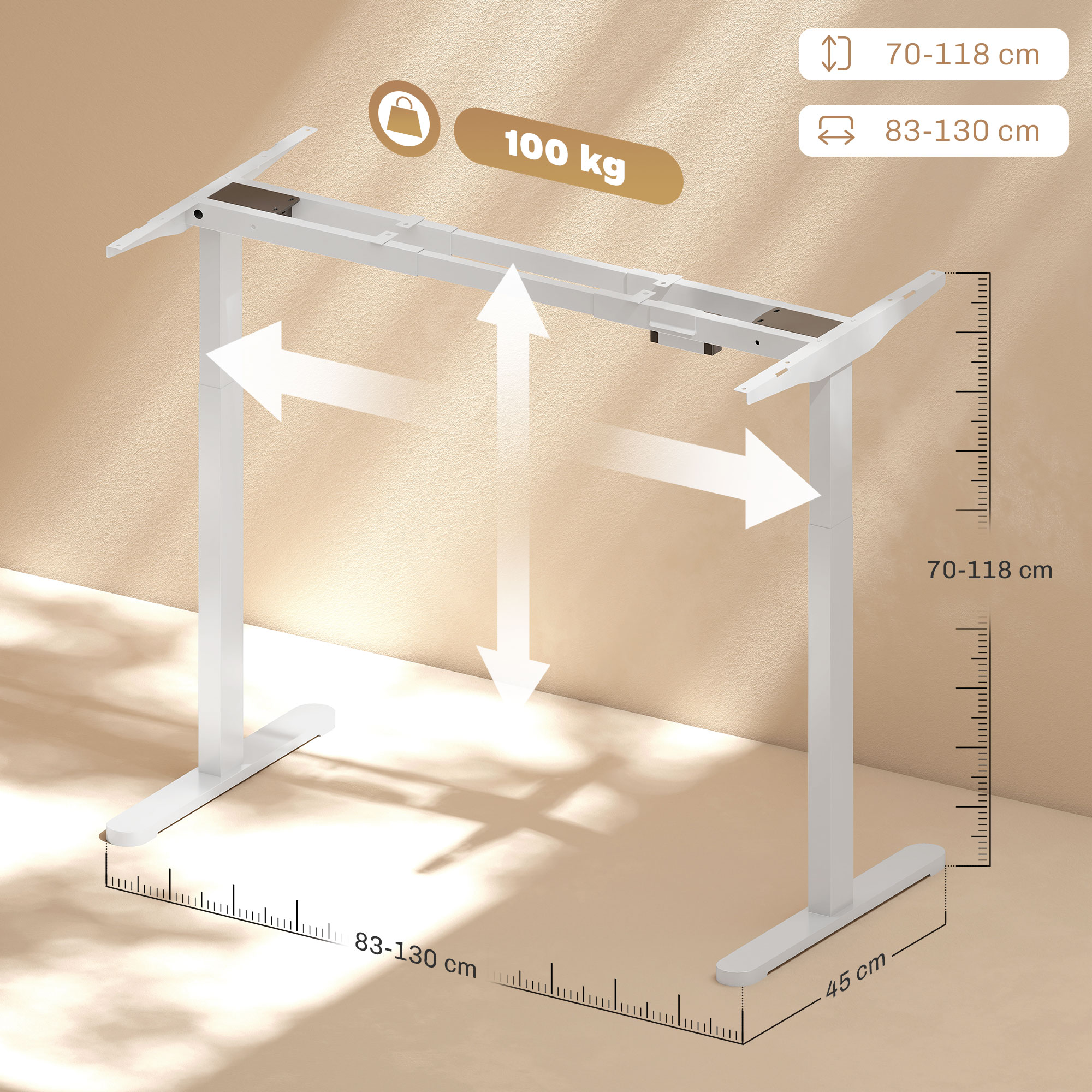 Aanpasbare grootte: Pas de hoogte van het bureauframe flexibel aan van 70 cm tot 118 cm en de breedte van 83 cm tot 130 cm om aan uw behoeften te voldoen. Geschikt voor tafelbladen van 120 tot 200 cm breed en 60 tot 80 cm diep.