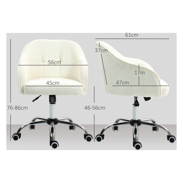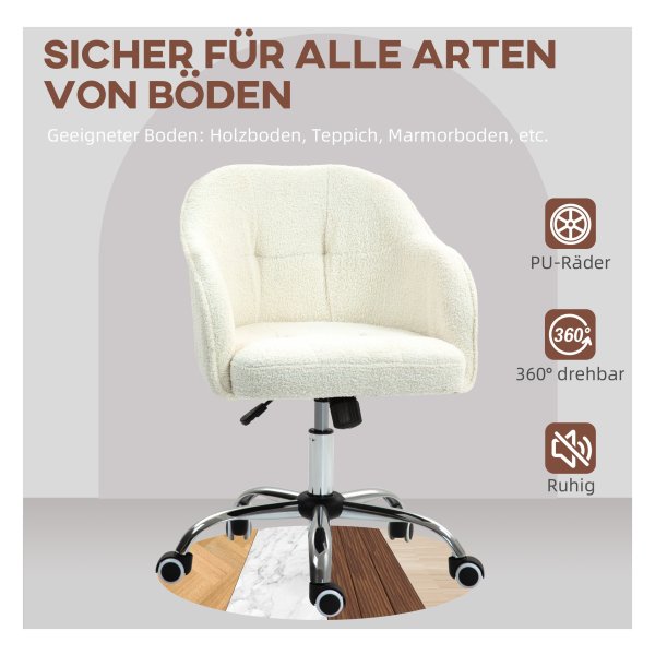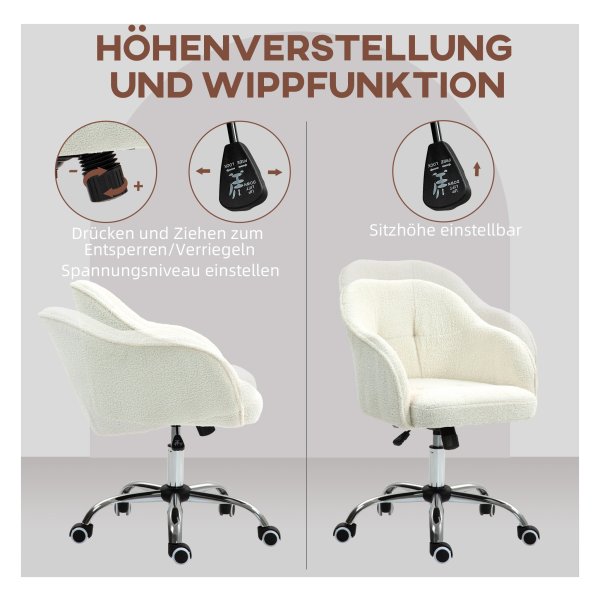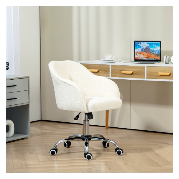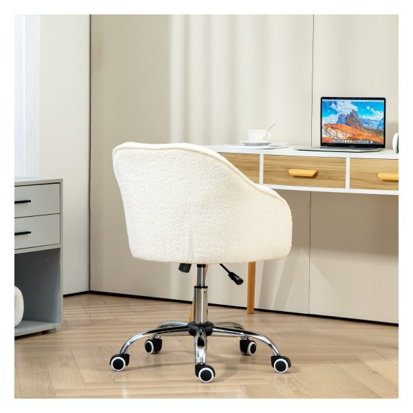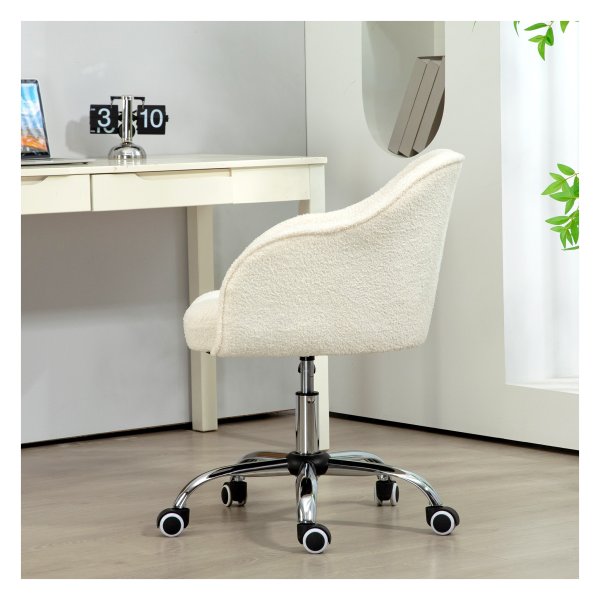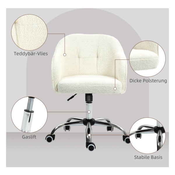 Deze HOMCOM bureaustoel met zachte teddy- textuur biedt comfort en ondersteuning, met verstelbare hoogte en 5 wielen voor eenvoudige beweging. Perfect voor lange werkdagen thuis..