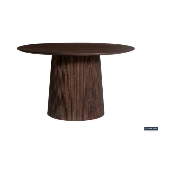 Eettafel ‘Miguel’ 130 cm Rond Donkerbruin, Structuur en blad massief hout Mangolia