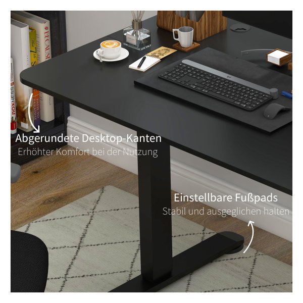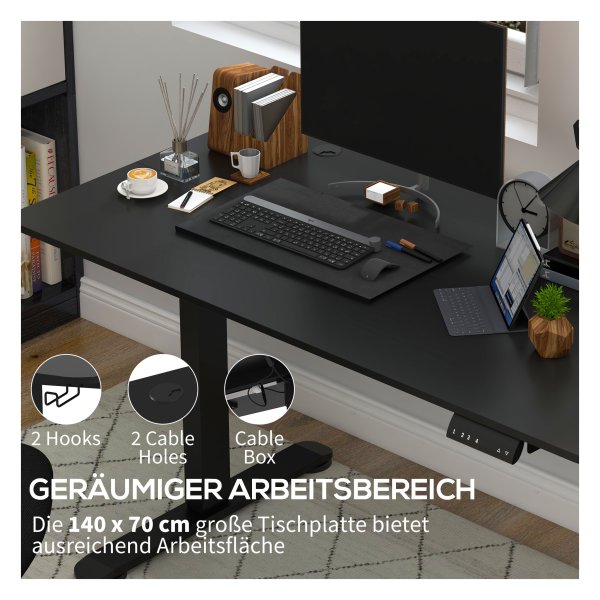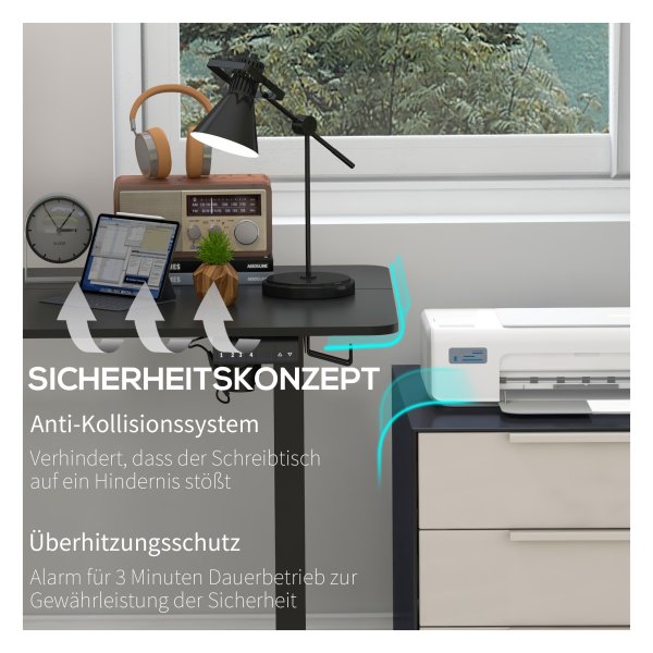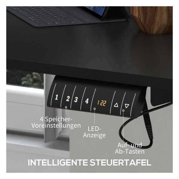 Das höhenverstellbare elektrische Stehpult Vinsetto bietet optimalen Komfort mit 4 voreingestellten Höhen von 72 cm bis 116 cm. Mit großzügiger Arbeitsfläche, Sicherheitsfunktionen und stabilen Stahlrahmen ist es ideal für den ergonomischen Arbeitsplatz..