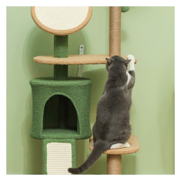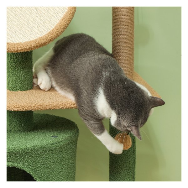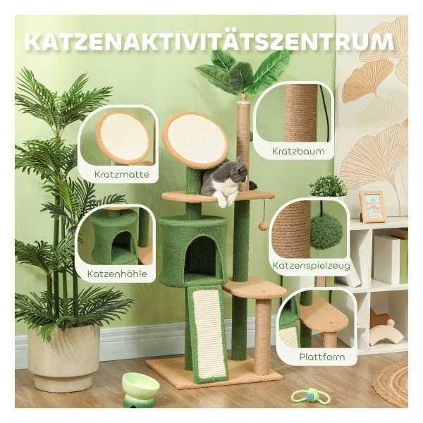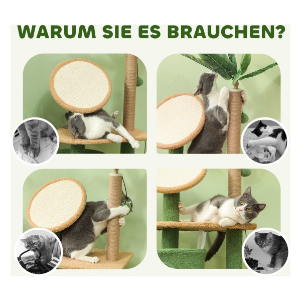 Geef jouw katten het ultieme kattenparadijs met deze groene krabpaal. De natuurlijke uitstraling door de kunstmatige bladeren past perfect in elk interieur. Jouw katten zullen genieten van de krabpalen, platforms en speelballen die deze krabpaal biedt. Dit zorgt niet alleen voor vermaak, maar beschermt ook jouw meubels tegen krassende kattenklauwen. Het zachte pluche en jute maken deze krabpaal tot een comfortabele oase voor jouw katten.