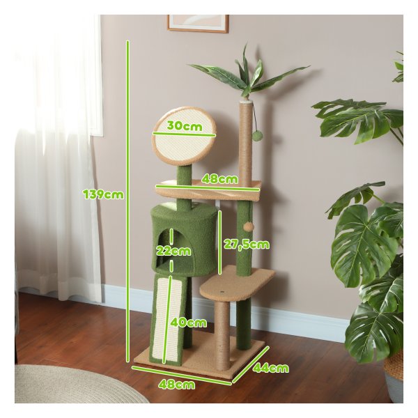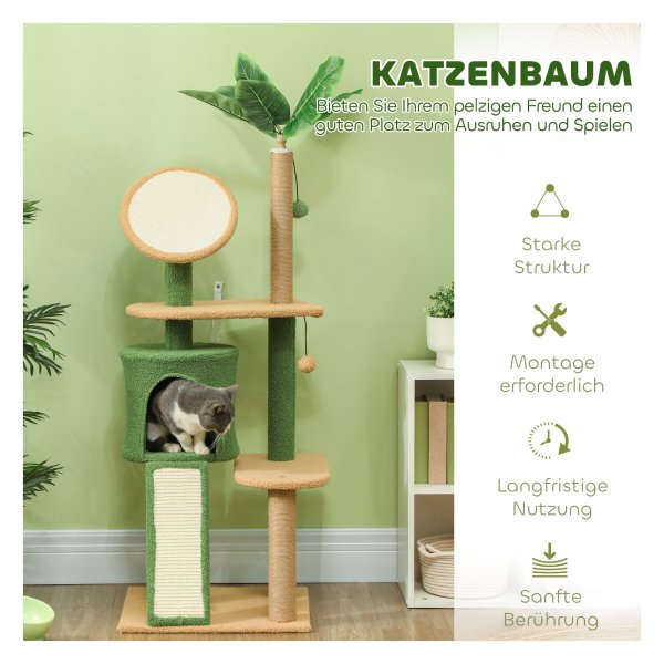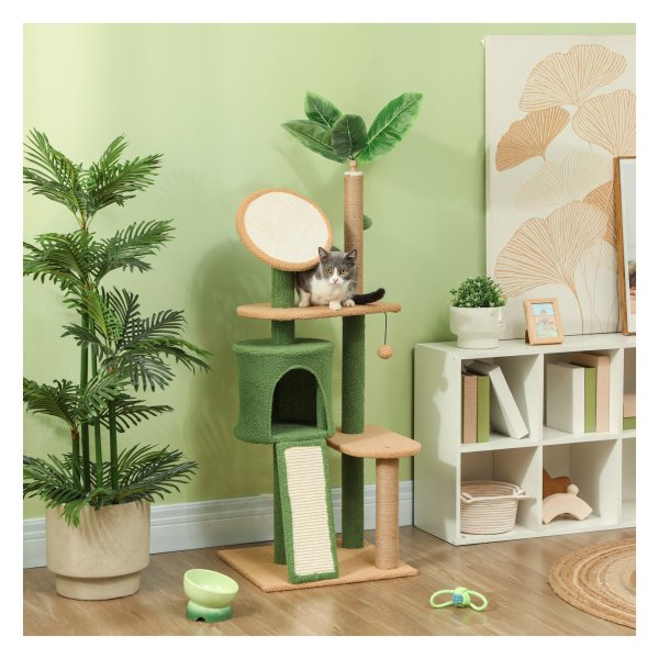 Bullet Point 5 | De PawHut Kattenboom biedt een speelse en comfortabele ruimte voor katten, met kunstmatige bladeren die perfect bij je interieur passen en verschillende ergonomische kenmerken zoals krabpalen, platforms en speeltjes om jouw harige vriendjes te vermaken terwijl je meubels beschermd blijven tegen krassen. |