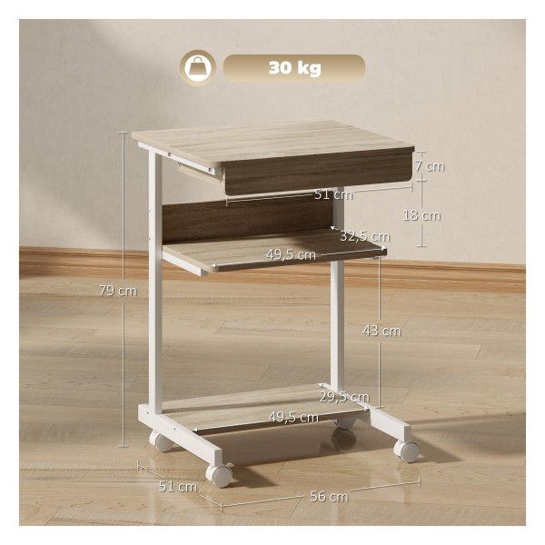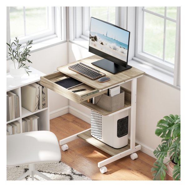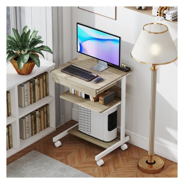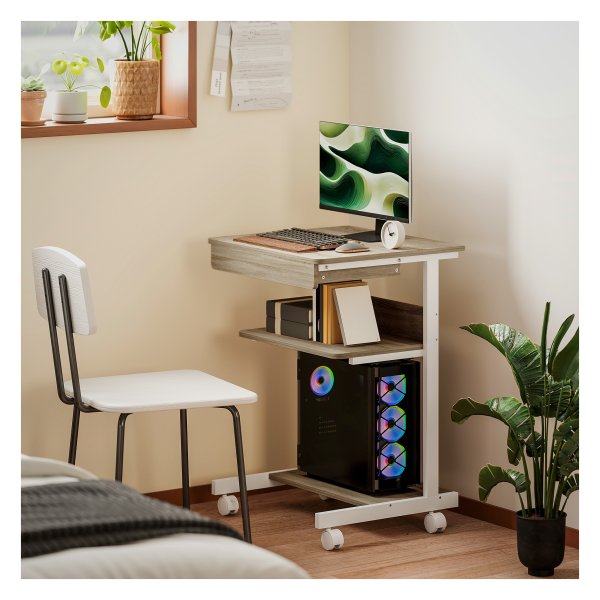Kompakte, moderne ladekast met rollen, perfect voor kleine ruimtes. Voorzien van schuiflade en 2 planken, ideaal voor organisatie en stijlvolle uitstraling. Sterke materialen en eenvoudige montage.