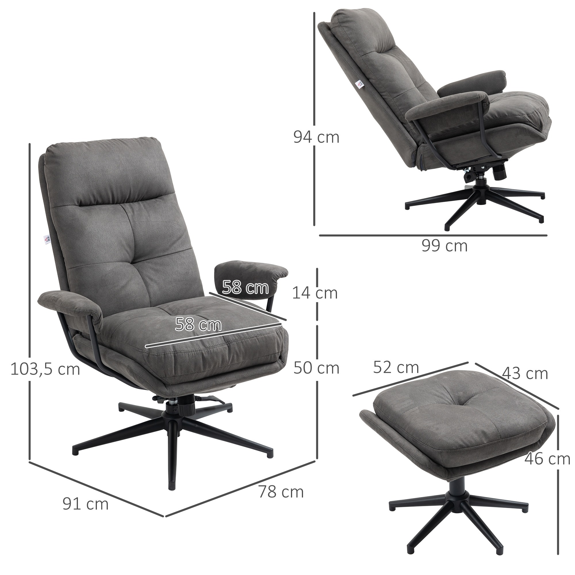 • Gewichtscapaciteit: 150 kg (fauteuil), 50 kg (voetenbank)
