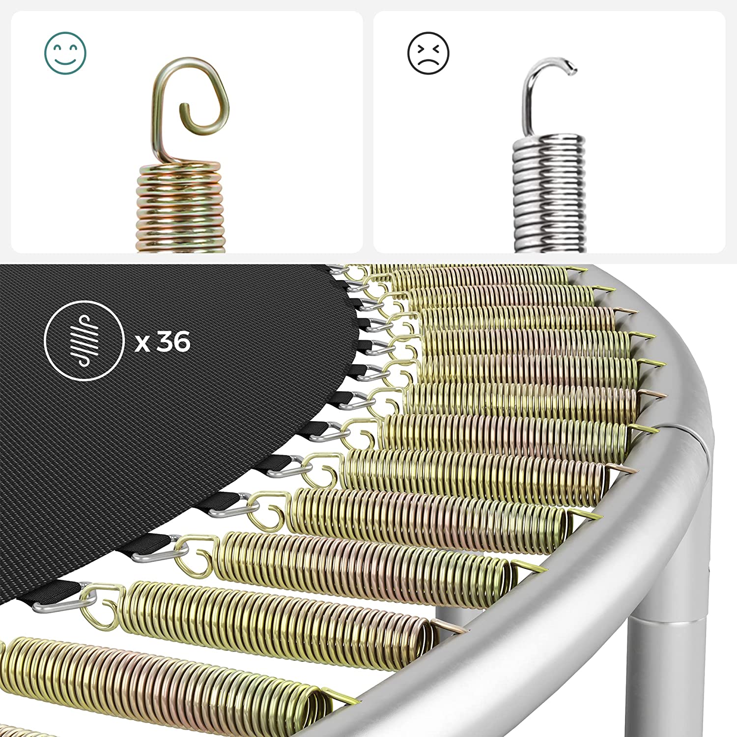 Veilig is veilig: Vooral als kinderen de trampoline gebruiken, heeft veiligheid natuurlijk de hoogste prioriteit. Dit springapparaat is tot 100 kg belastbaar. Zo kun je ontspannen terwijl je kinderen vrolijk springen” Altijd een stap voor: Het frame van de trampoline is gemaakt van verzinkt staal en is 1,2 mm dik. Hij wordt bovendien met T-verbindingen aan de trampolinepoten bevestigd, wat voor een hogere stabiliteit en dus belastbaarheid zorgt Goed gevoerd: vergeet gevaarlijke, vrijliggende springveren. De veren van deze trampoline zijn bedekt met een vulling van 15 mm dik schuim, die bovendien met pvc is bekleed. Zo beschermt hij perfect tegen uv-licht, vocht of roest Preventieve maatregelen: We zouden allemaal de voorkeur geven aan een zacht net of bekleding in plaats van tegen een harde metalen stang. Daarom zijn de stangen van deze trampoline voorzien van een zachte schuimvulling. Het dichte, 1,8 m hoge veiligheidsnet zorgt er bovendien voor dat je geen aftocht doet Wat je krijgt: Een stabiele trampoline, een geïllustreerde montagehandleiding (mogelijk niet beschikbaar in het Nederlands) en een geweldige manier om samen met je gezin plezier te hebben Veel plezier in de tuin: Deze 183 cm grote trampoline is perfect om op een warme middag de tuin onveilig te maken en een ronde te springen (of zelfs een beetje fitness te gebruiken). Laat ook je kinderen naar hartenlust op deze trampoline van springen, terwijl je in de zon bruint of vrolijk aan de barbecue staat. Veiligheid heeft de hoogste prioriteit: Natuurlijk moet trampolinespringen vooral leuk zijn. De veiligheid mag hierbij niet te kort zijn. Daarom is deze trampoline uitgerust met een zeer fijnmazig veiligheidsnet, dat een botsing bijzonder goed dempt. Bovendien zijn de stangen van het net en de springveren bedekt met EPE-schuim, zodat ook daardoor het risico op letsel wordt verminderd. Als je nog vragen hebt over deze trampoline, aarzel dan niet om contact met ons op te nemen. Wij zullen ons zo snel mogelijk bij je melden. Productdetails: Kleur: zwart, blauw Diameter: 183 cm Materiaal van het frame: Verzinkte stalen buis Materiaal van het springdoek: polypropyleen (265 g/m2) Materiaal van de veiligheidskussen: PVC (310g/m2) EPE-schuim Afstand tussen vloer en trampolineoppervlak: 45 cm Maximale Belastbaarheid: 100 kg Inhoud levering: 1 x trampoline Ø 183 cm. 1 x zakje met accessoires. 1 x handleiding (Duits, Engels, Frans, Spaans en Italiaans). Aanwijzingen van : De trampoline moet altijd door slechts één persoon worden gebruikt. Doe geen saltos op de trampoline. Hang niet aan de bovenrand van het veiligheidsnet. Verwijder alle scherpe of scherpe voorwerpen voordat je de trampoline betreedt. De trampoline is niet geschikt voor gebruik door kinderen jonger dan 3 jaar. Veiligheidswaarschuwing: Te gebruiken onder direct toezicht van een volwassene.