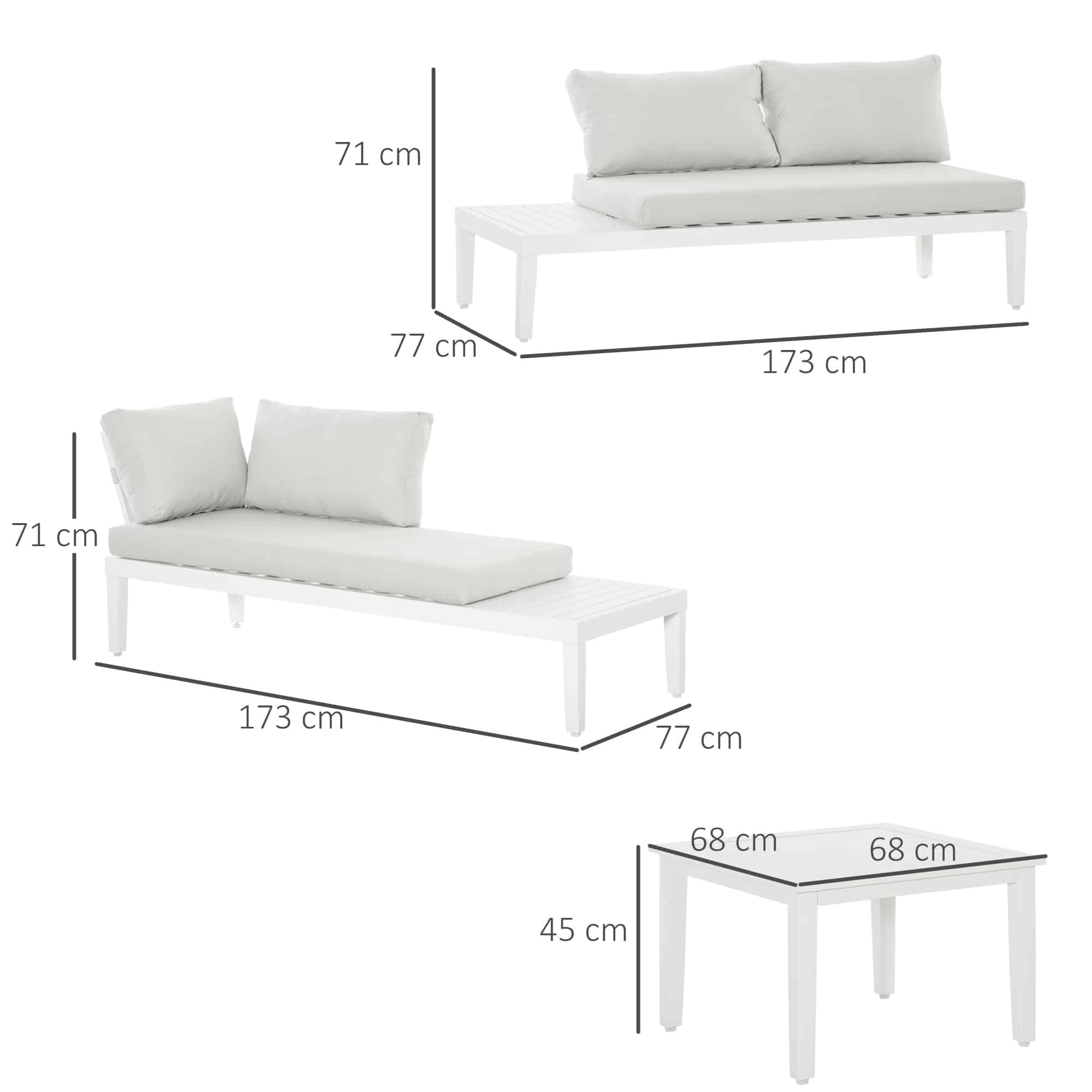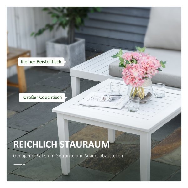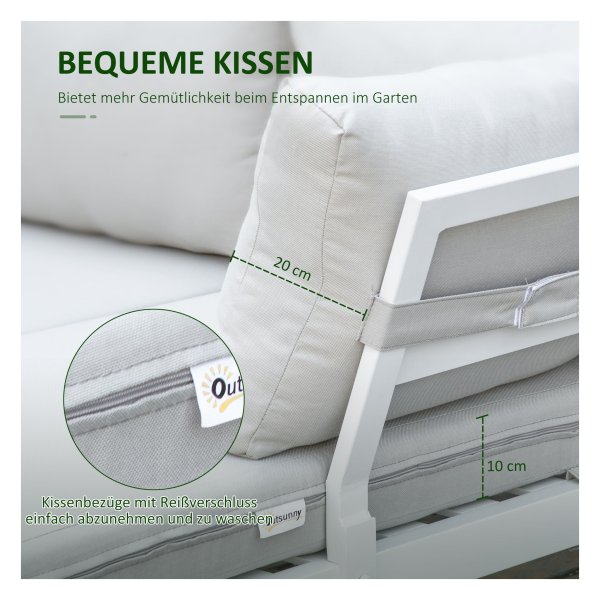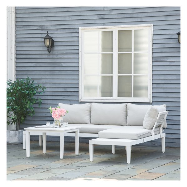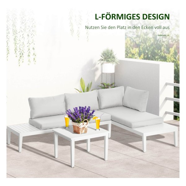 Wil je genieten van het buitenleven in stijl en comfort? Dan zijn deze prachtige tuinmeubels in crème wit, gemaakt van duurzaam aluminium in een L-vormig ontwerp, de perfecte keuze voor jouw buitenruimte. Met deze set ben je verzekerd van voldoende zitruimte en een elegante uitstraling in je tuin, op je terras of balkon.