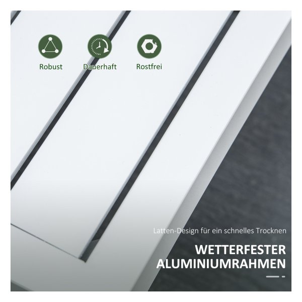 Door het gebruik van aluminium frames zijn deze tuinmeubels robuust en duurzaam, perfect voor langdurig gebruik buitenshuis. Daarnaast zorgen de lamellen op het tafelblad en de stoelen ervoor dat wateraccumulatie wordt voorkomen, waardoor de set gemakkelijk te onderhouden is.