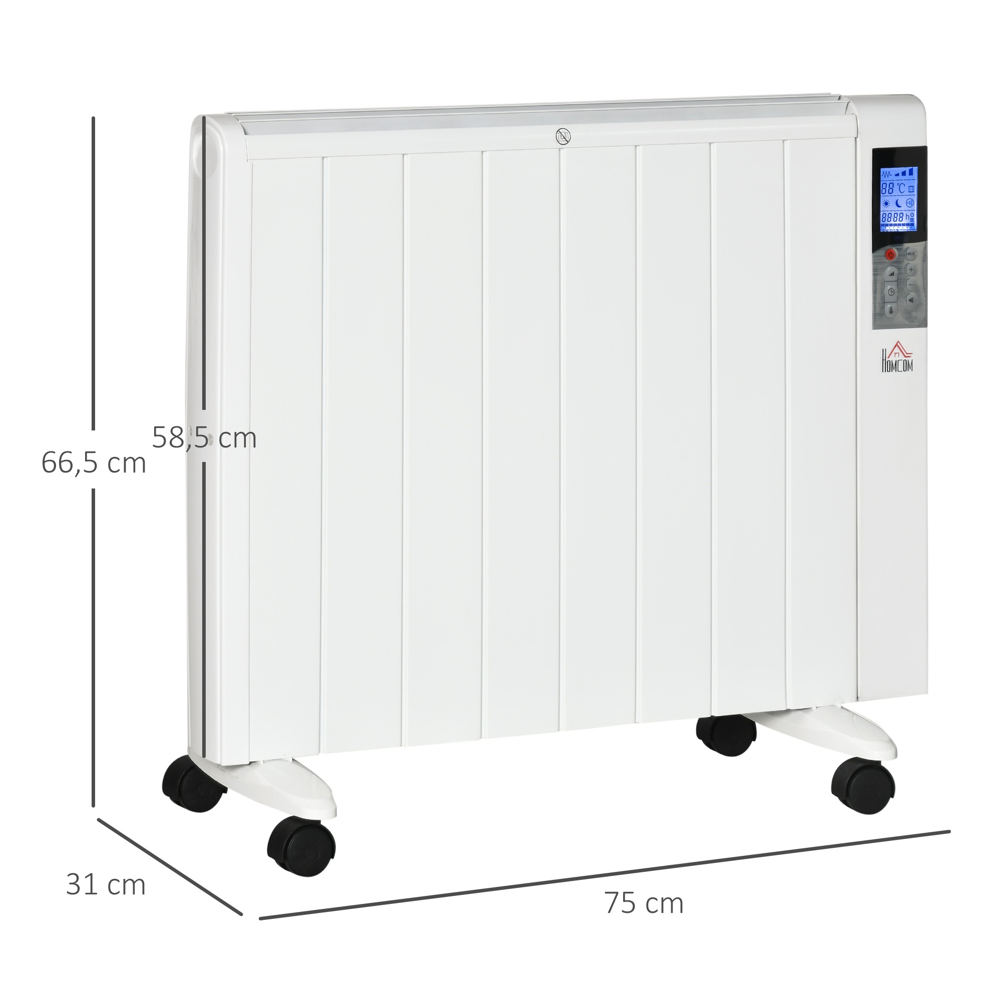 De Elektrische Radiator is gemaakt van hoogwaardige materialen zoals staal en aluminium, waardoor deze duurzaam en betrouwbaar is in gebruik. Met afmetingen van 75L x 7,5B x 58,5Hcm (zonder voeten) en 75L x 31B x 66,5Hcm (met voeten) past deze radiator perfect in elke kamer.