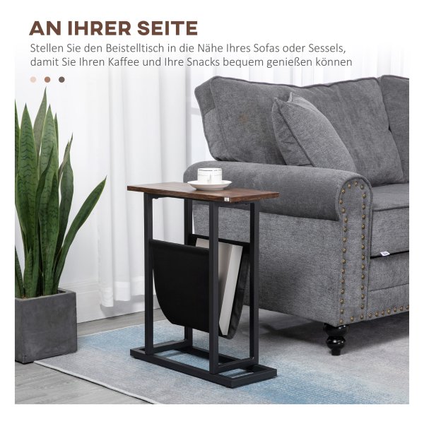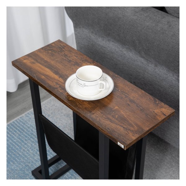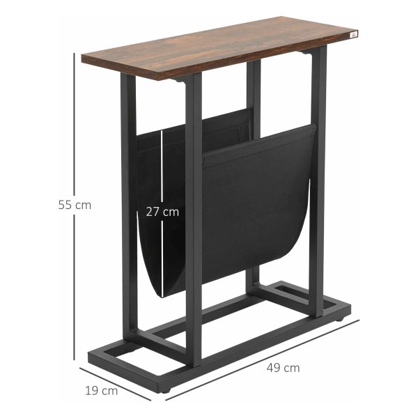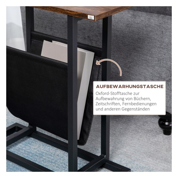De tafel heeft een totale afmeting van 49L x 19B x 55H cm, voldoende ruimte voor diverse activiteiten. Het tafelblad kan tot 10 kg dragen, terwijl de praktische stoffenzak aan de zijkant extra opslagruimte biedt voor bijvoorbeeld tijdschriften of afstandsbedieningen, met een draagvermogen van 5 kg.