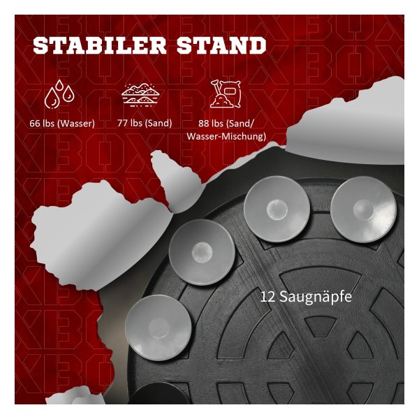 - Veerkracht van de standaard: 30 kg (water)/35 kg (zand)/40 kg (zandwatermengsel)