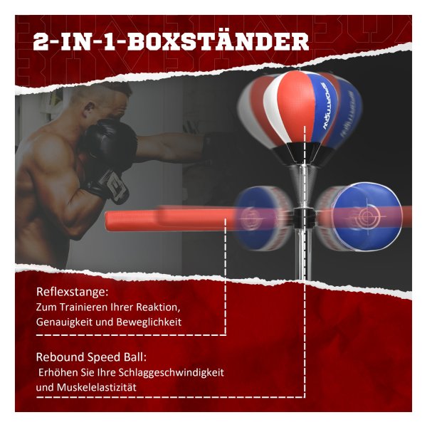 Met de Boksbal – – Verstelbare hoogte – Reflexstang – Rood kun je zowel als enthousiaste beginner als professionele bokser je vaardigheden verbeteren. De boksbal is geschikt voor verschillende gebruikerstypes en biedt een uitdagende en effectieve workout.