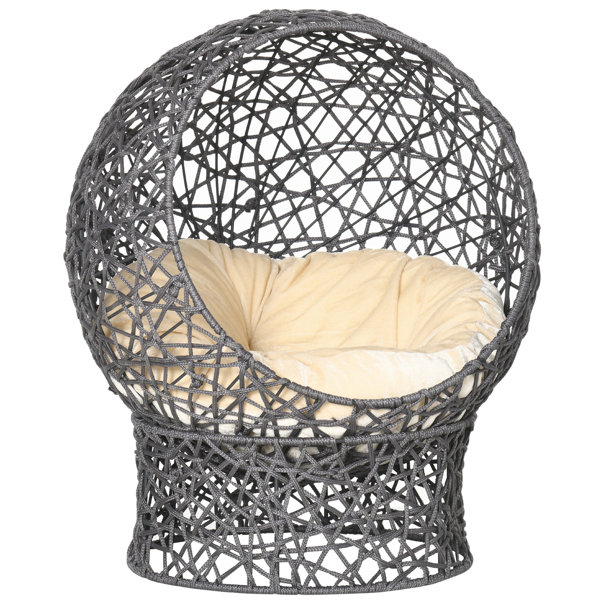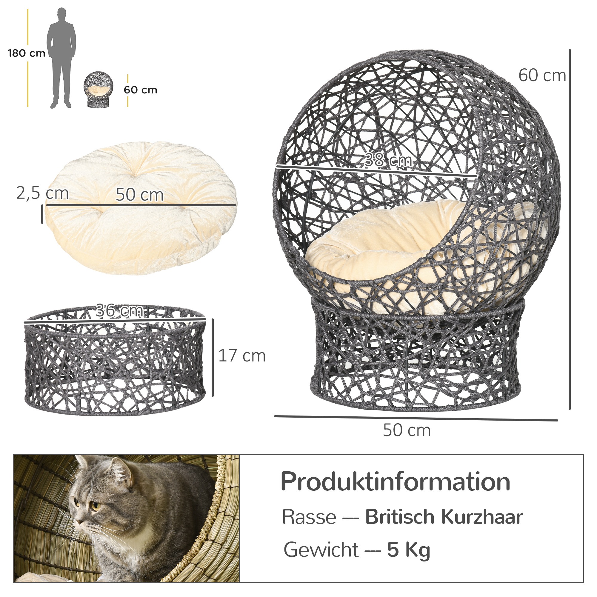 Het gevlochten ontwerp van het kattenbedje zorgt voor een natuurlijke en klassieke uitstraling in je huis. Het bedje is gemaakt van hoogwaardige materialen en is stabiel, duurzaam en gemakkelijk te onderhouden. Hierdoor kan je kat veilig en comfortabel genieten van zijn slaapplek.