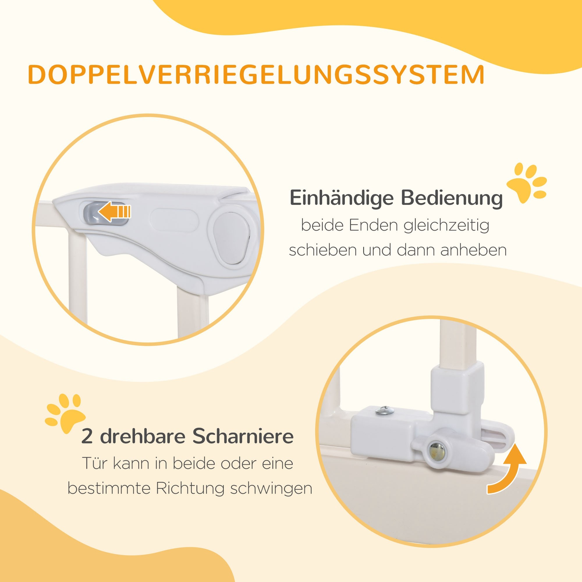 Het deurrooster is voorzien van een dubbel vergrendelingsmechanisme, waardoor uw huisdier veilig op zijn plaats blijft. Het rooster kan automatisch sluiten wanneer de openingshoek minder is dan 90° en open blijven wanneer deze boven de 90° gaat. Met 2 roterende sloten aan de onderkant kunt u de deur in beide richtingen laten zwaaien voor extra flexibiliteit.