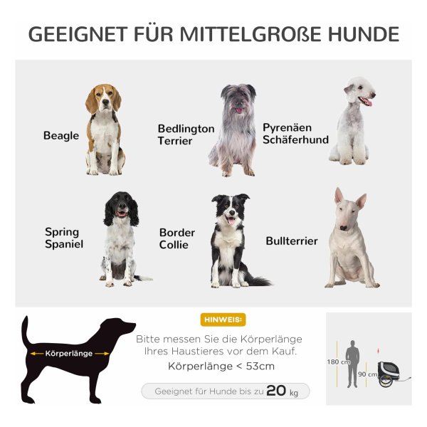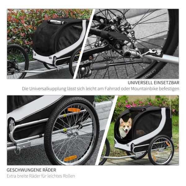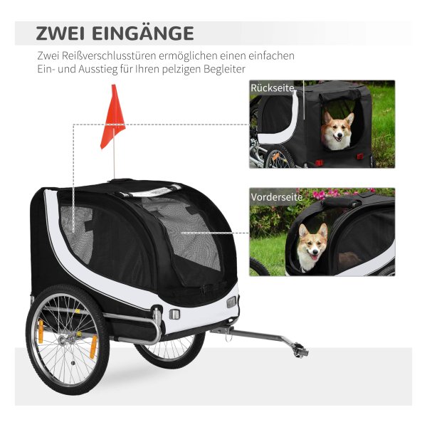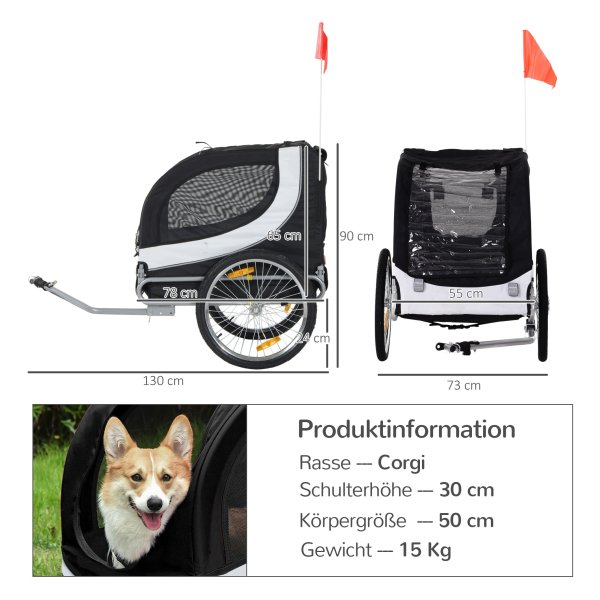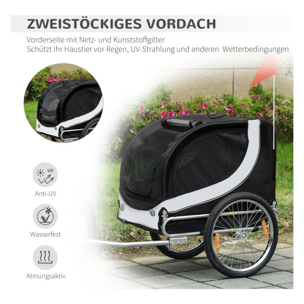 Met de hondenkar van Pawhut kunt u samen met uw harige vriend veilig en comfortabel op pad gaan. Of het nu gaat om een wandeling in het park, een bezoek aan de dierenarts of een boodschappentrip, deze handige hondenkar biedt onmisbare mobiliteitshulp voor uw huisdier. Dankzij de universele koppeling is de trailer eenvoudig te bevestigen aan de meeste fietsen, waardoor u snel en gemakkelijk op pad kunt.