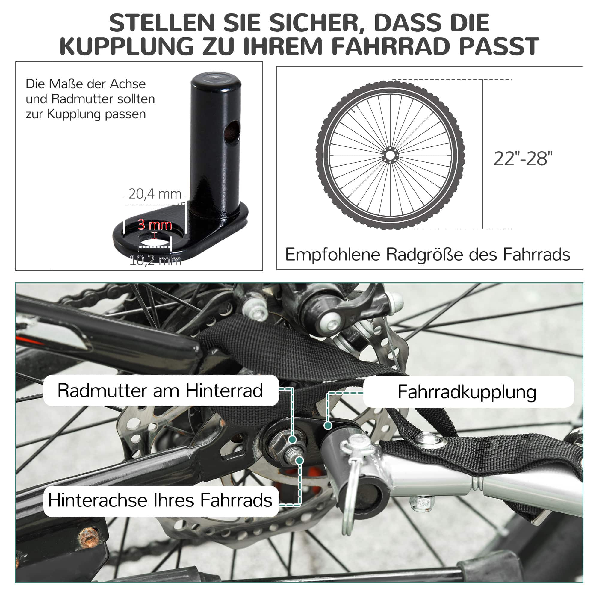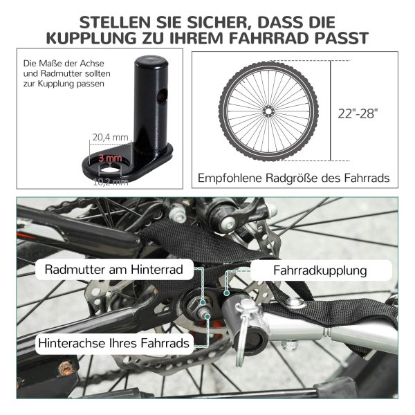 - Aanbevolen fietsgrootte: 22″-28″ (controleer of de koppeling past)