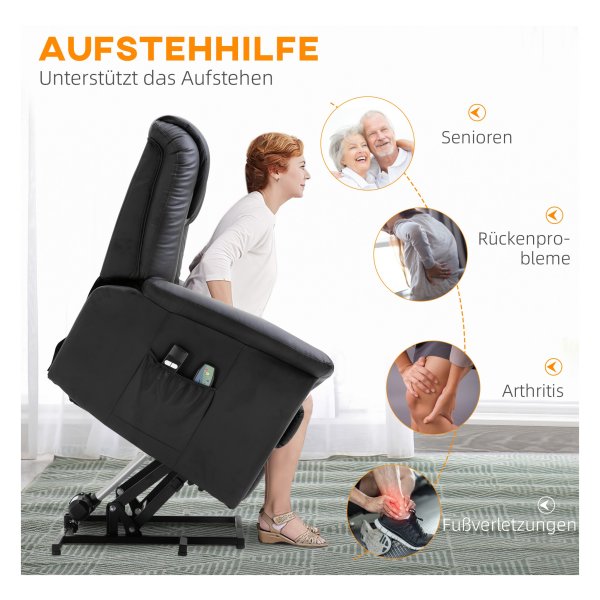 De massagestoel met sta-op functie is het perfecte meubelstuk voor jouw welverdiende rustmomentjes. Deze elektrische stoel is voorzien van een handige ingebouwde stroomopwaarts, wat ideaal is voor ouderen of mensen die herstellen van een blessure. Dankzij deze functie kunnen zij gemakkelijk opstaan, zonder enige moeite.
