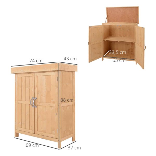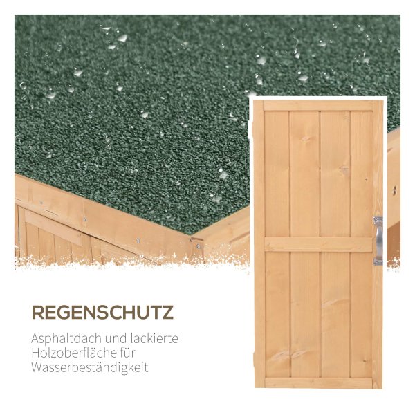 Deze tuinschuur is vervaardigd van natuurlijk hout en behandeld om bestand te zijn tegen alle weersomstandigheden. Het dak is bedekt met een waterdicht materiaal, waardoor uw spullen veilig en droog blijven, zelfs tijdens de meest regenachtige dagen.