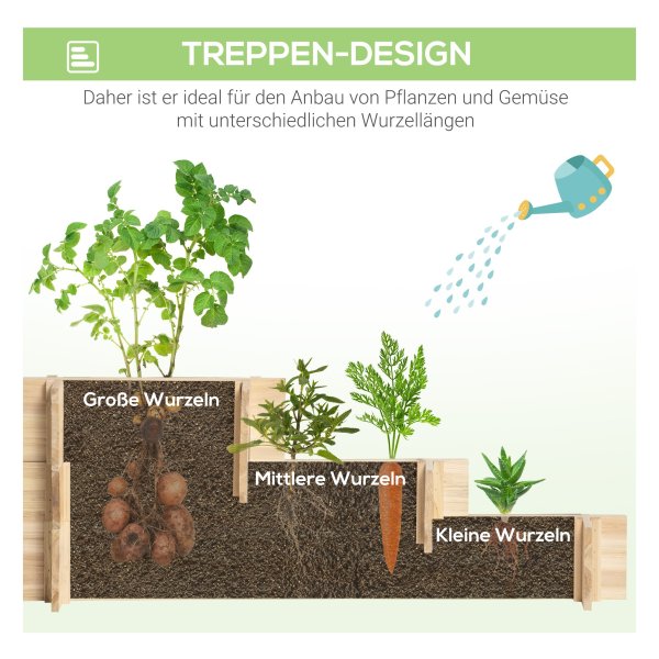 - Drie verschillende vloerniveaus bieden ruimte voor planten met verschillende wortellengtes.