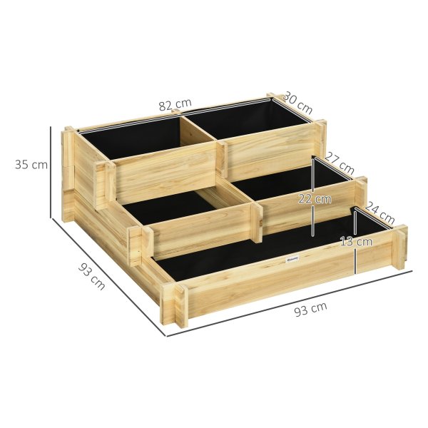 Met een totale afmeting van 93L x 93B x 35H cm en verschillende plantoppervlakken op verschillende hoogtes, biedt dit plantenbed genoeg ruimte voor al jouw favoriete planten en bloemen. Daarnaast beschermt het verhoogde frame je planten tegen ongewenste dieren en zorgt het voor een goede luchtcirculatie rond de wortels.