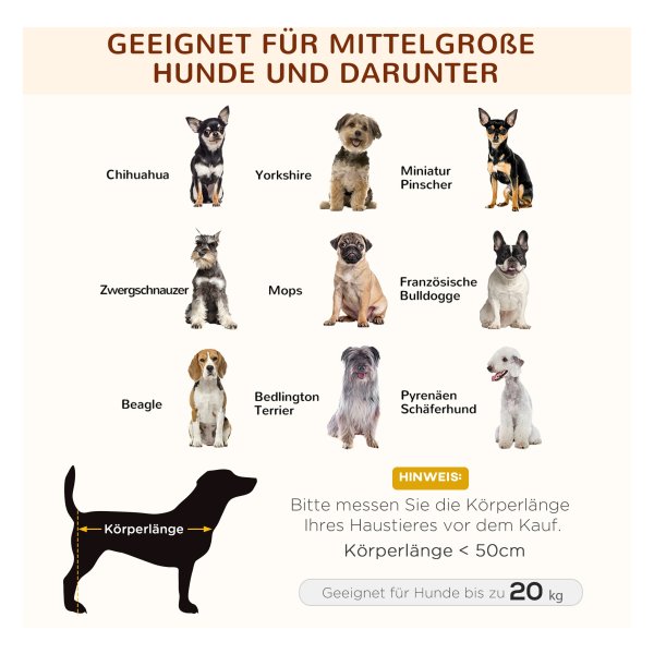 De anti-slip benen zorgen voor extra stabiliteit en zorgen ervoor dat het bed stevig op zijn plaats blijft staan. Dit is ideaal voor middelgrote honden met een lengte van minder dan 50 cm en een gewicht van minder dan 20 kg.