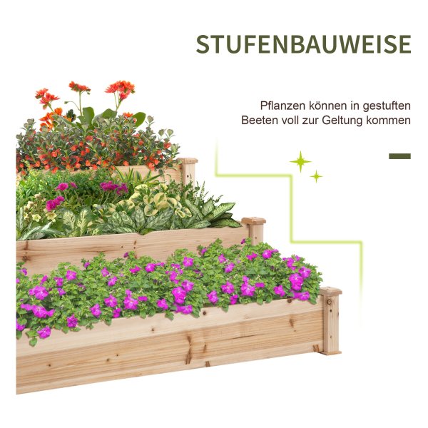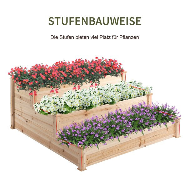 Met zijn grote capaciteit voldoet de bloemenbak aan een verscheidenheid aan decoratieve behoeften. De solide houten structuur zorgt ervoor dat je jarenlang plezier zult hebben van dit plantenrek. Daarnaast biedt het speciale ontwerp de planten de mogelijkheid om volop van de zon te genieten, wat hun groei en bloei bevordert.
