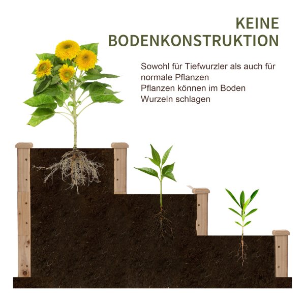 Door de verschillende hoogtes van de plantenrek kunnen zowel diepgewortelde planten als normale planten worden geplant. Dit maakt de bloemenbak ideaal voor het kweken van bloemen, groenten en kruiden. Zo kun je met gemak een gevarieerde en kleurrijke tuin creëren.