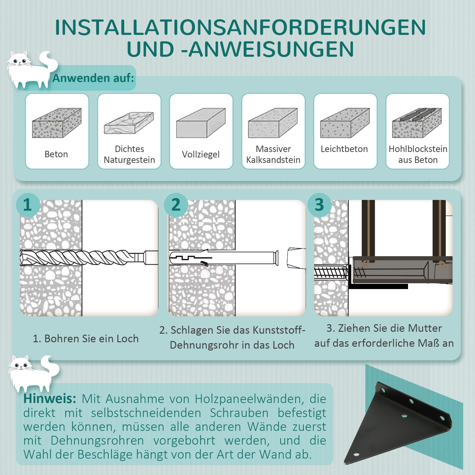 De klimmuur biedt uw kat een veilige en verhoogde plek om te rusten en te spelen. Gemaakt van stevig MDF-materiaal dat duurzaam en gemakkelijk te onderhouden is. Voorzien van sisal touw voor uw kat om aan te krabben en scherpen, wat helpt bij het voorkomen van beschadiging van meubels.