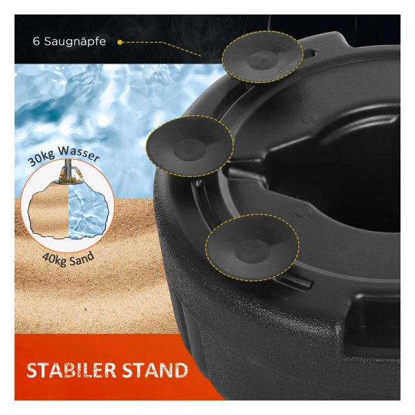 - Voet kan gevuld worden met water of zand voor extra stabiliteit