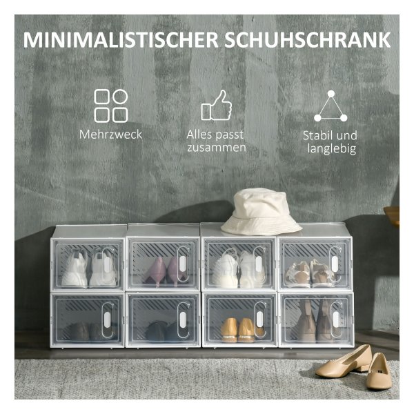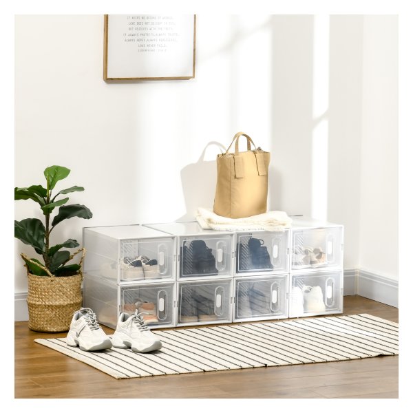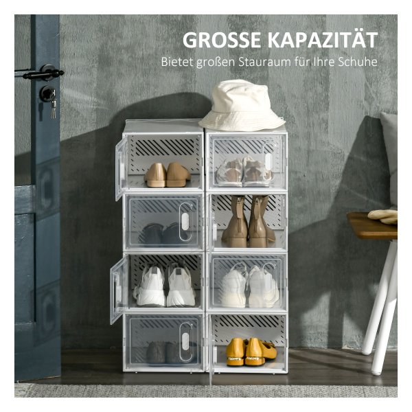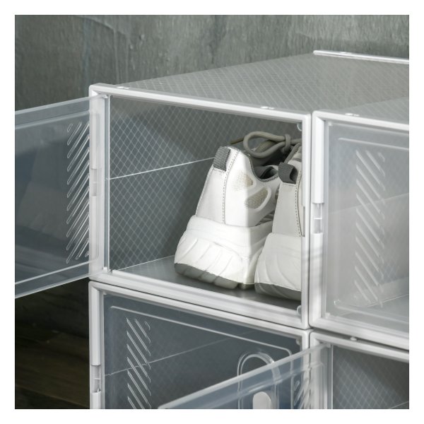 De 8 kubuscompartimenten van deze schoenenopslagplank bieden voldoende ruimte voor al uw schoenen, met een maximale schoenmaat van 8,5 (VK)/43 (EU). Dankzij de magnetische deursloten wordt uw schoeisel beschermd tegen stof en andere invloeden van buitenaf. Bovendien zijn de handige handgrepen een handig extraatje waarmee u de plank eenvoudig kunt verplaatsen.