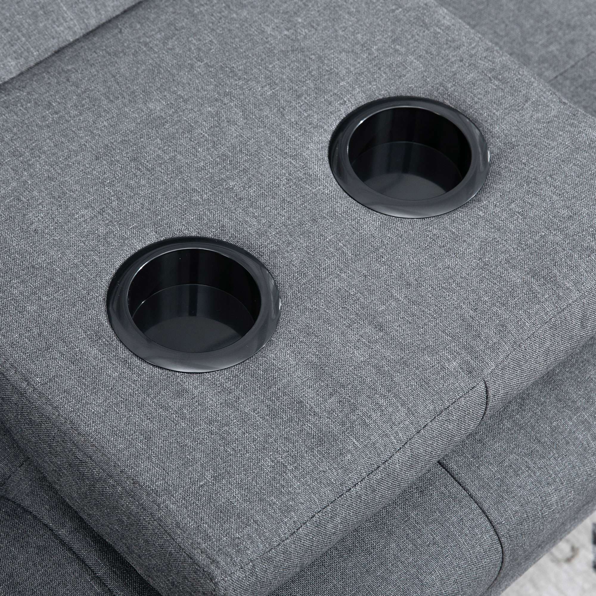 Daarnaast is dit bankstel uitgerust met een handige bijzettafel in het midden met bekerhouders, zodat je altijd je drankjes bij de hand hebt, of je nu zit, leunt of ligt. Het linnen uiterlijk van het bovenste materiaal is niet alleen aangenaam en mooi, maar ook duurzaam en gemakkelijk te onderhouden.