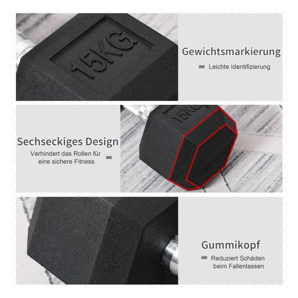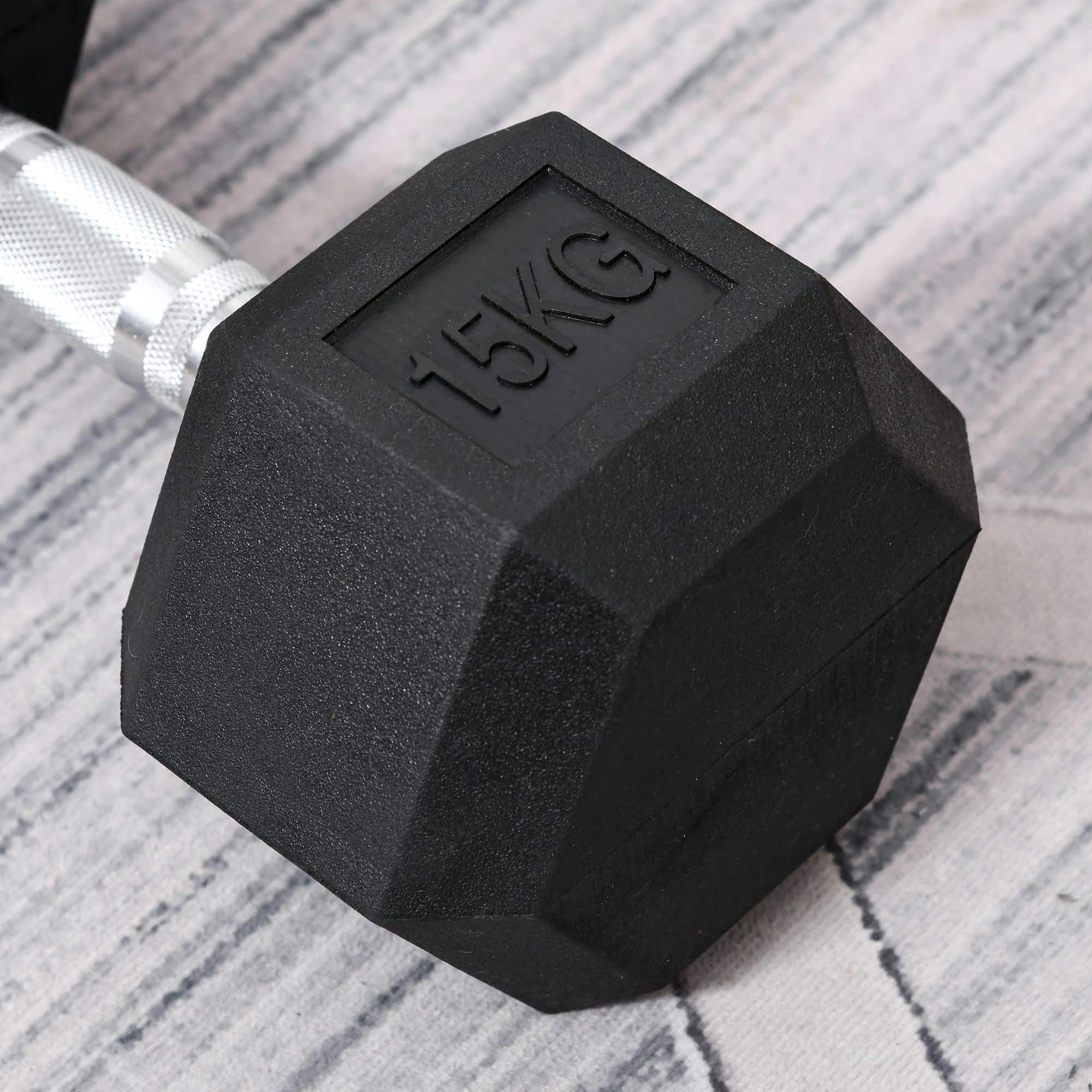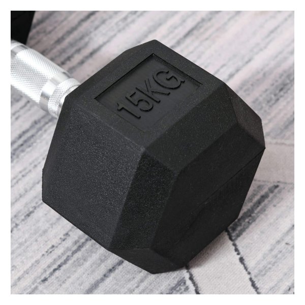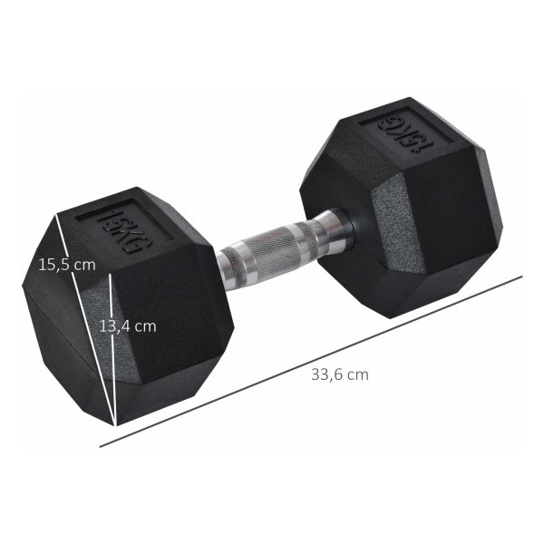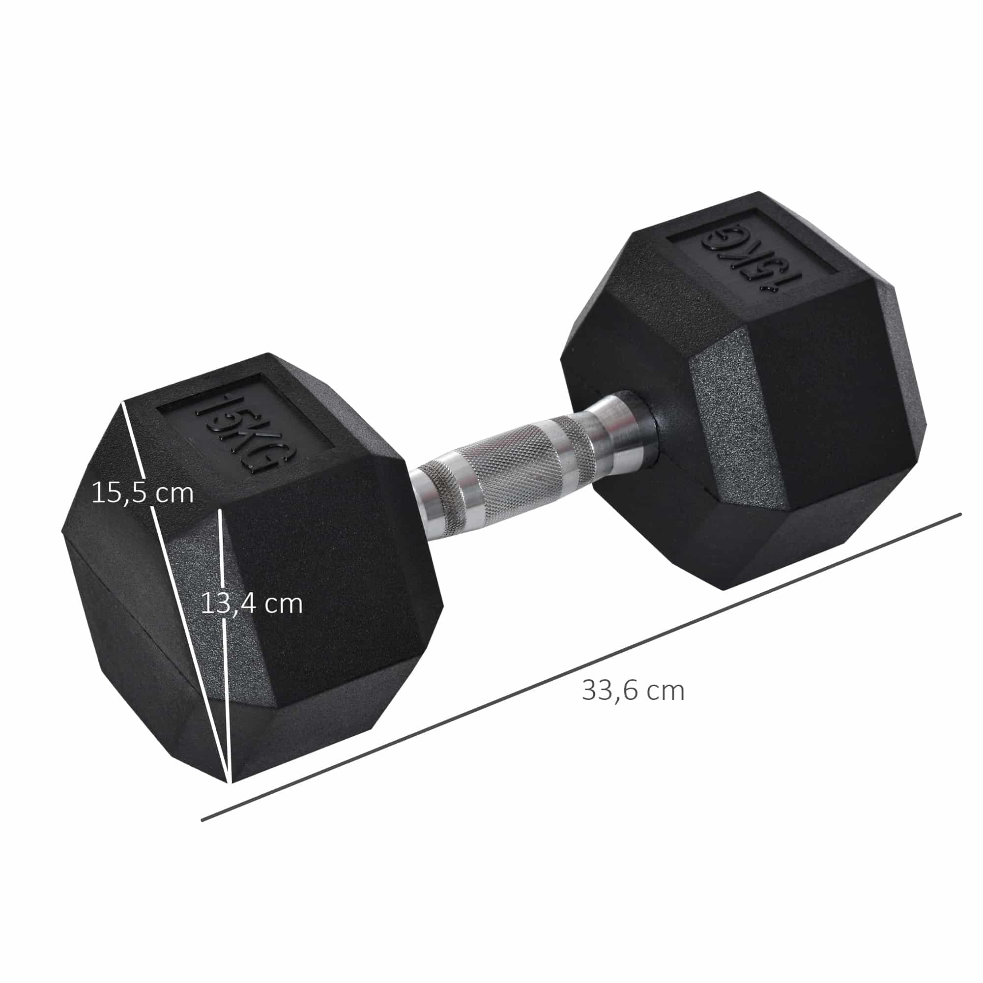 Dumbbell – Zaza Home – Rubberen greep – 15 kg, zwart