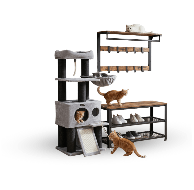 Krabpaal voor Katten – 143 cm – Met Hangmat, 2 Uitkijkplateaus – Rookgrijs