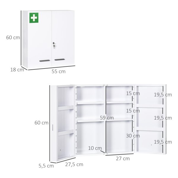 De EHBO-kruissticker kan eenvoudig op de deur geplakt worden, zodat deze in geval van nood direct herkenbaar is. Bovendien is het medicijnkastje ruimtebesparend en geschikt voor wandmontage, waardoor het in elke ruimte past. En het beste van alles? Er is geen montage nodig, dus je kunt het kastje direct in gebruik nemen!