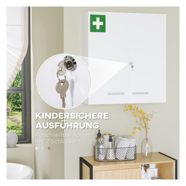 Het medicijnkastje is voorzien van een veilig sluitsysteem met een dubbele sleutel. Dit is ideaal voor huishoudens met kinderen en huisdieren, omdat zo voorkomen wordt dat zij per ongeluk bij de medicijnen kunnen komen. Zo kun jij met een gerust hart je medicijnen opbergen, wetende dat ze veilig zijn.