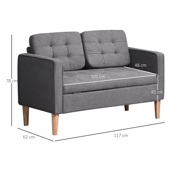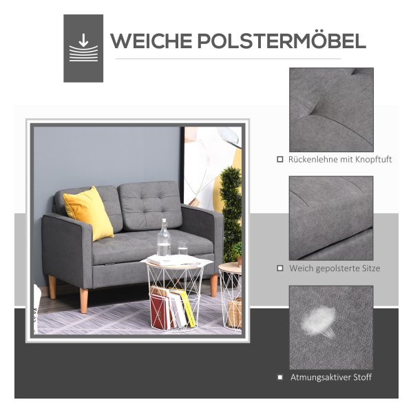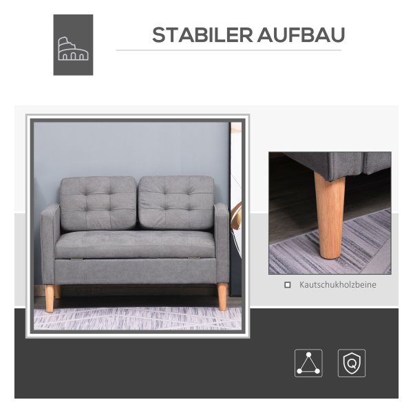 Tag: 2-Zitsbank, Stoffen bank, Dubbele bank, Afneembare bank met kussens, Rubberhouten bank, Katoenen bank, Grijs bankstel, 117 x 62 x 78 cm bankstel, 839-032