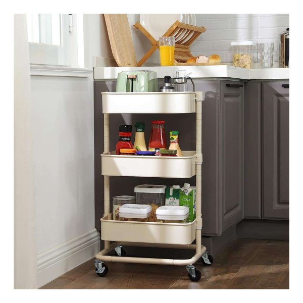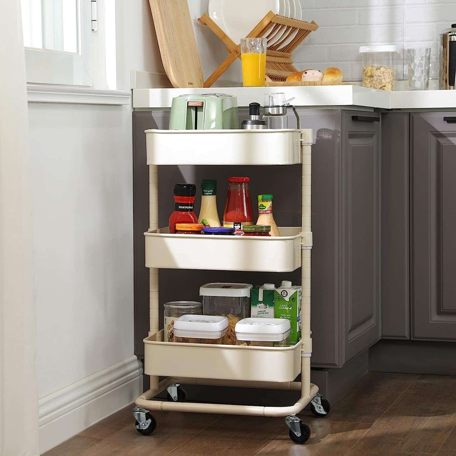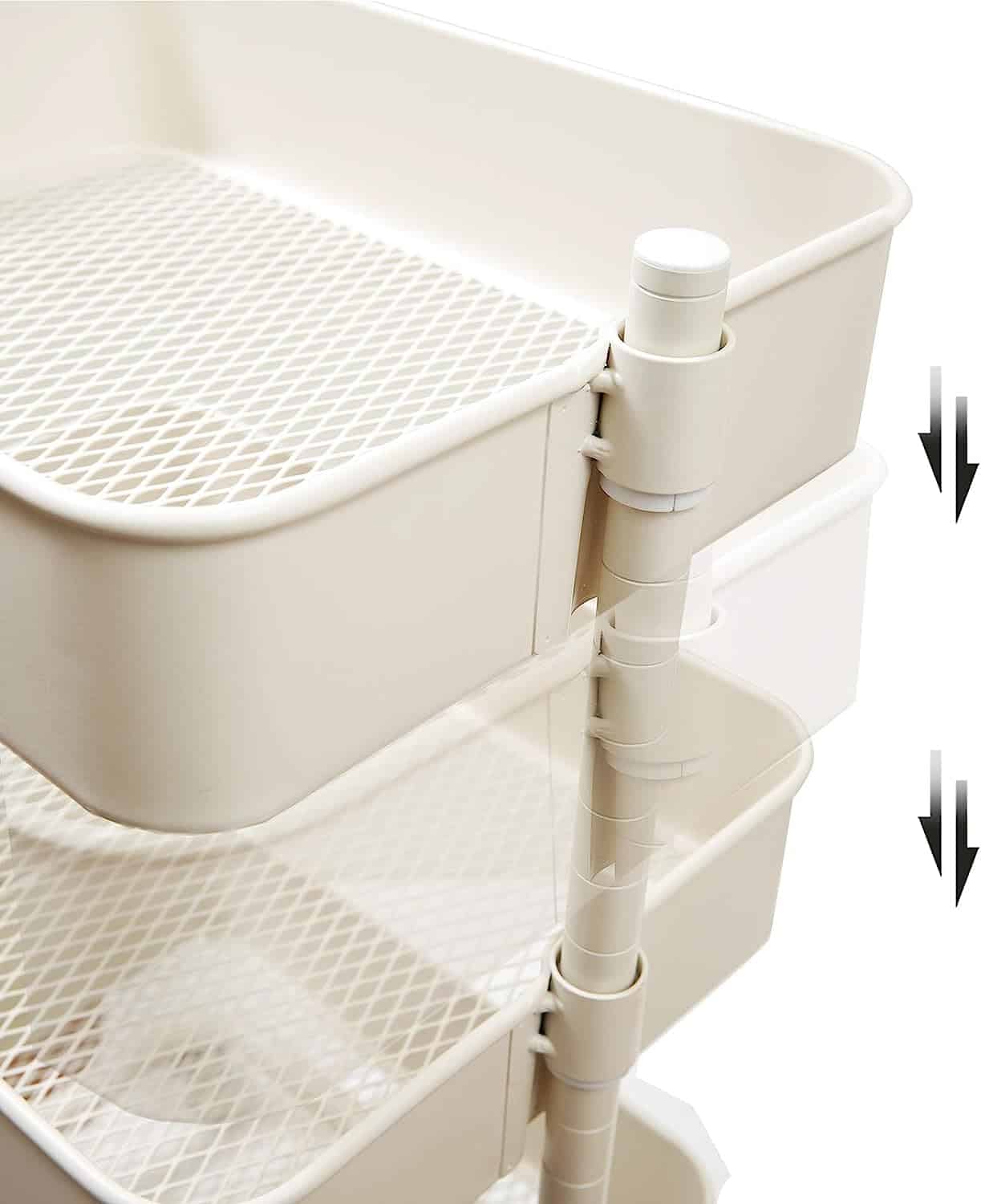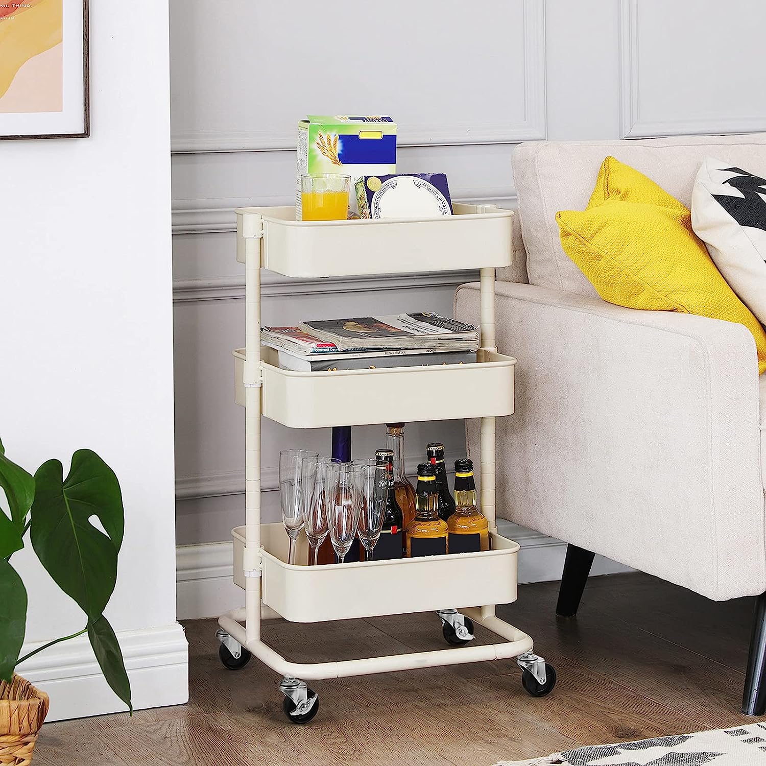 3-Tier Storage Trolley, Rolling Cart – Keukenopbergwagen Met Verstelbare Planken, Utility Cart Met 2 Remmen, Eenvoudige Montage, Voor Badkamer, Keuken, Kantoor, Wit