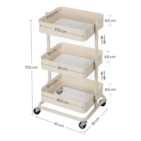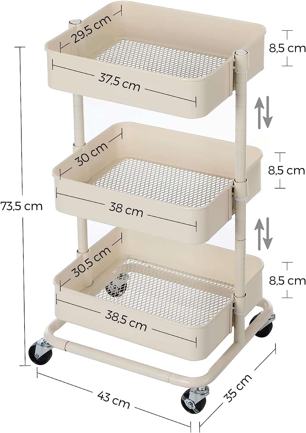 De trolley heeft 3 verstelbare planken, waardoor u de ruimte kunt gebruiken die u nodig heeft. De planken kunnen worden versteld in hoogte, waardoor u de trolley kunt aanpassen aan uw behoeften.