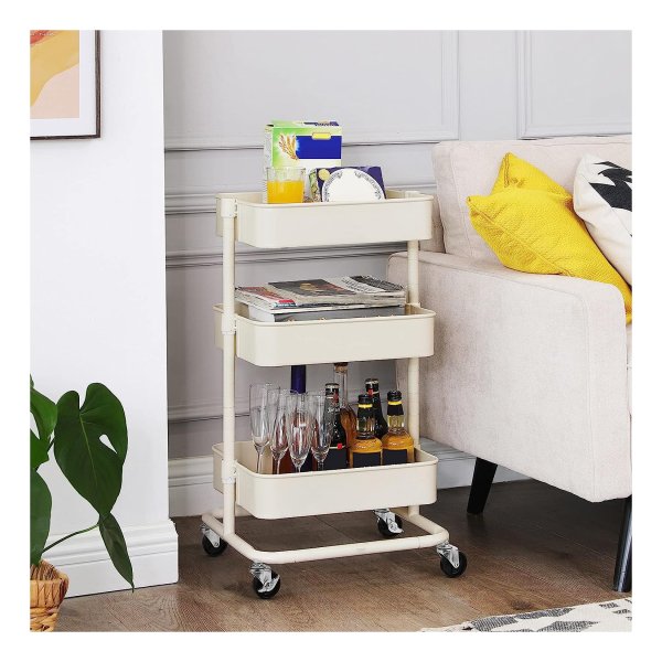 Deze 3-Tier Storage Trolley is een handige opbergwagen met verstelbare planken, die ideaal is voor het organiseren van uw keuken, badkamer, kantoor of andere ruimte. De trolley is gemaakt van stevig metaal en is voorzien van een wit poedercoating, waardoor hij sterk en duurzaam is.