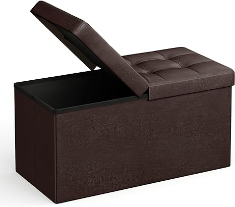 30 inch vouwopslag Ottomaanse bank met flipping deksel, opbergkastvoetenbank, faux leer, bruin