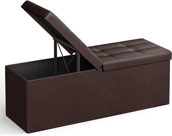 43 inch vouwopslag Ottomaanse bank met flipping deksel, opbergkistvoetsteun met gewatteerde stoel met ijzeren frame -ondersteuning, bruine