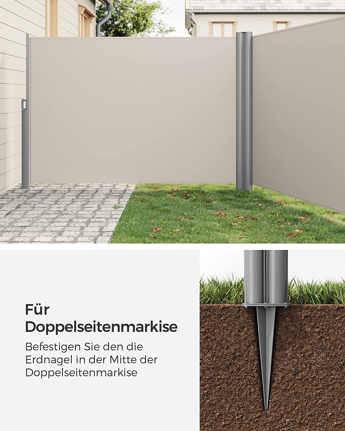 Inslaghuls voor luifelkast: passend bij de dubbele zijmarkies is deze grondnagel voor een veilige bodemmontage in de tuin
