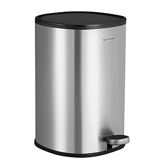 Bullet Point 2 | Het Songmics afvalbakje heeft een capaciteit van 5 liter en is zilver van kleur, met een step-on openingsmechanisme, gemaakt van roestvrij staal en speciaal ontworpen voor gebruik in de badkamer, met de speciale functie van stil sluiten en een cilindrische vorm. |