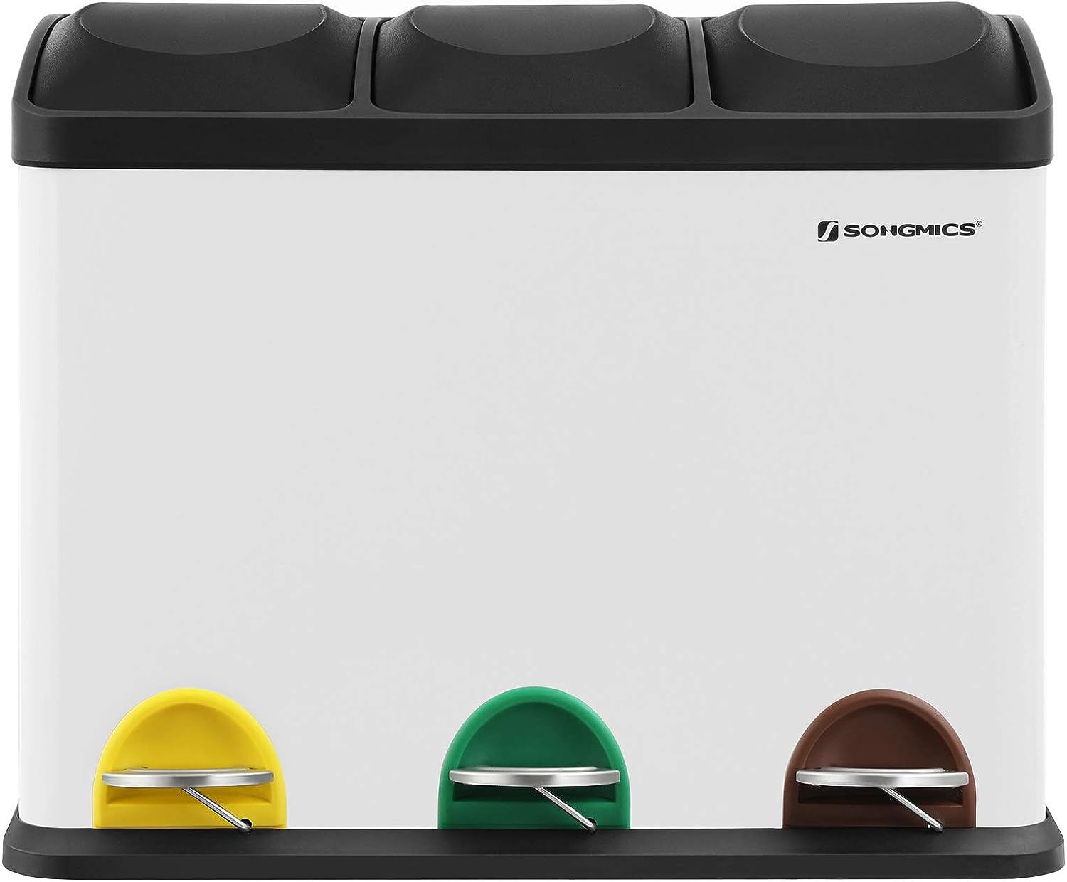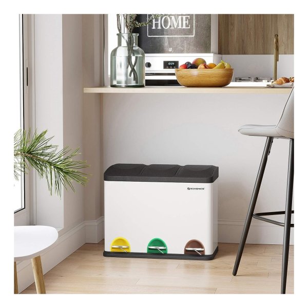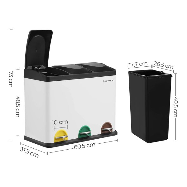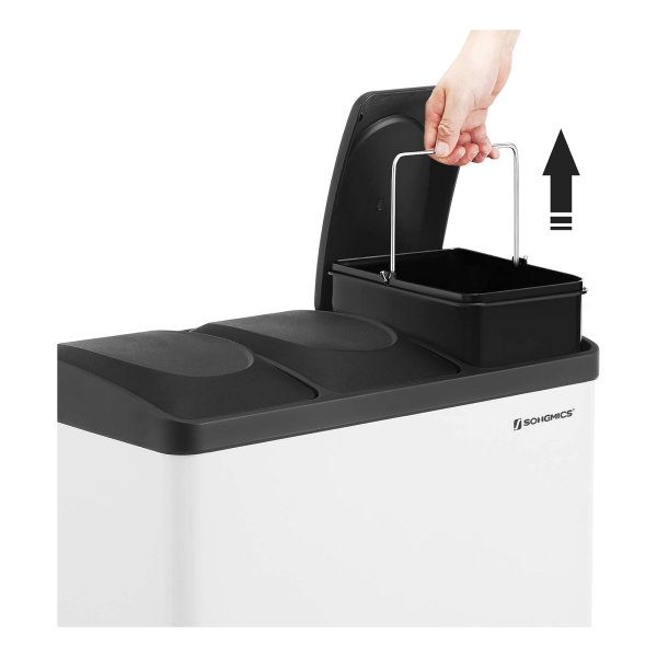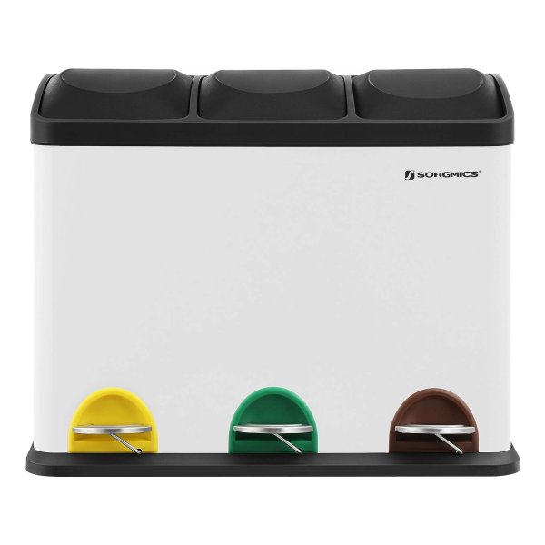 Afvalbak Voor De Keuken, Afvalbak, 45 Liter, Afvalbak Met Binnenbak, Afvalscheidingssysteem, Pedaalemmer Van Roestvrij Staal, 3 X 15 Liter, Wit-Zwart