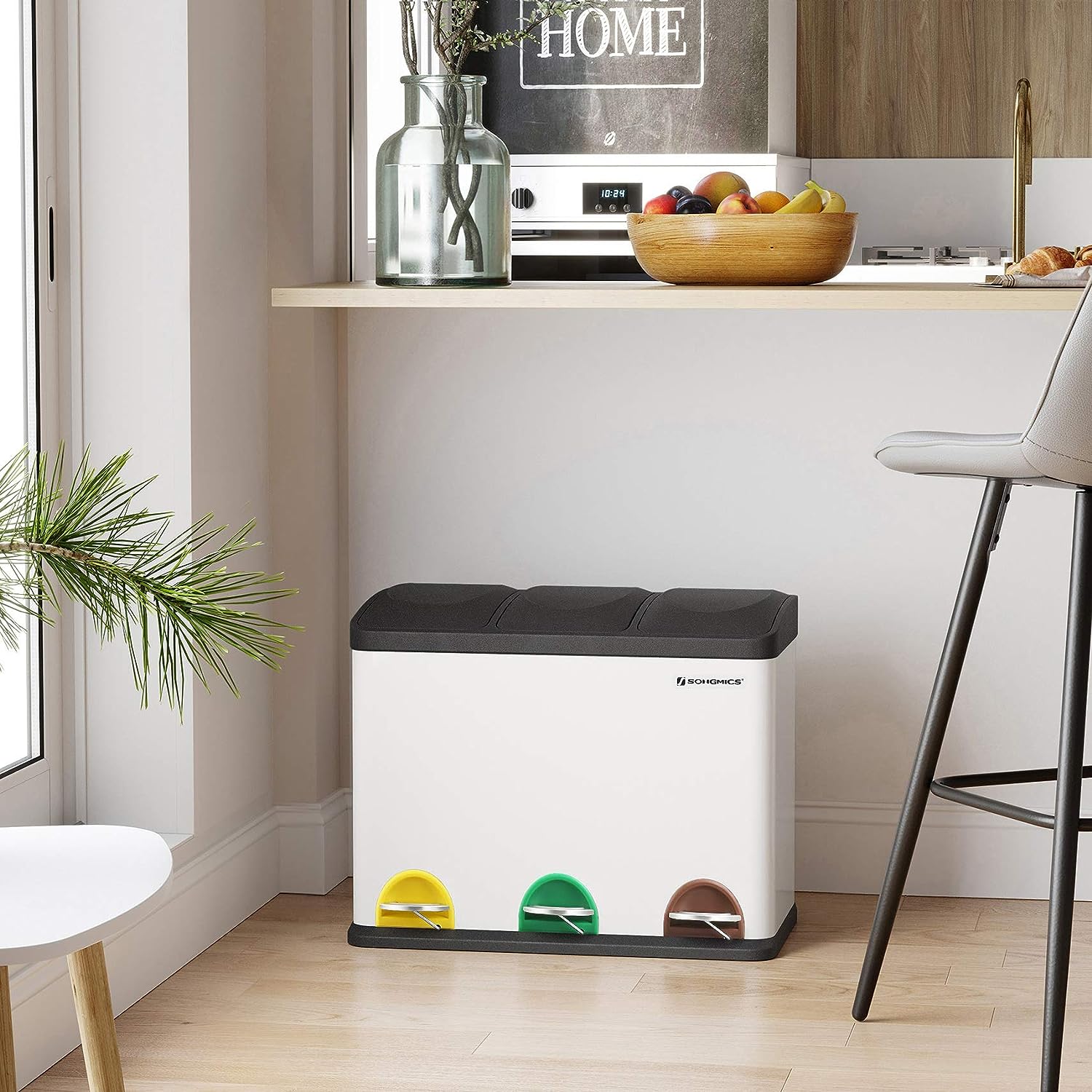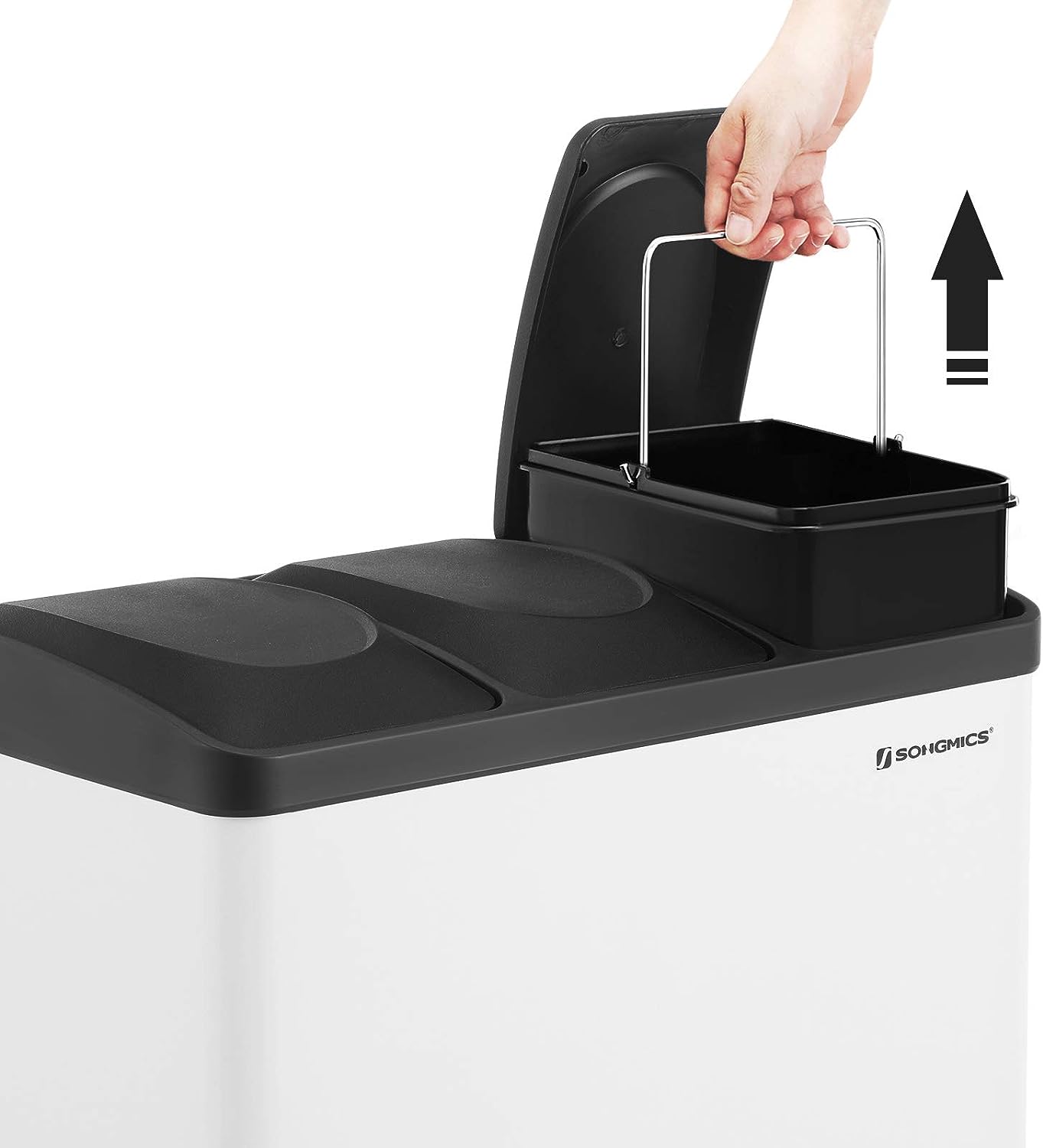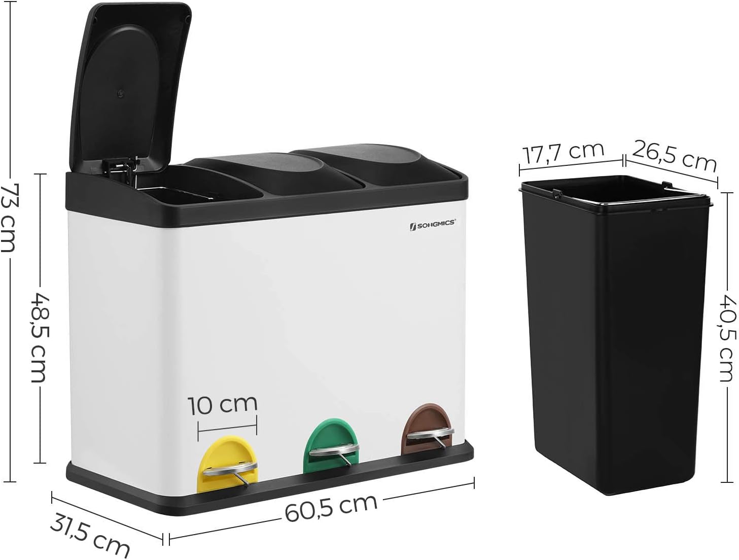 Afvalbak Voor De Keuken, Afvalbak, 45 Liter, Afvalbak Met Binnenbak, Afvalscheidingssysteem, Pedaalemmer Van Roestvrij Staal, 3 X 15 Liter, Wit-Zwart