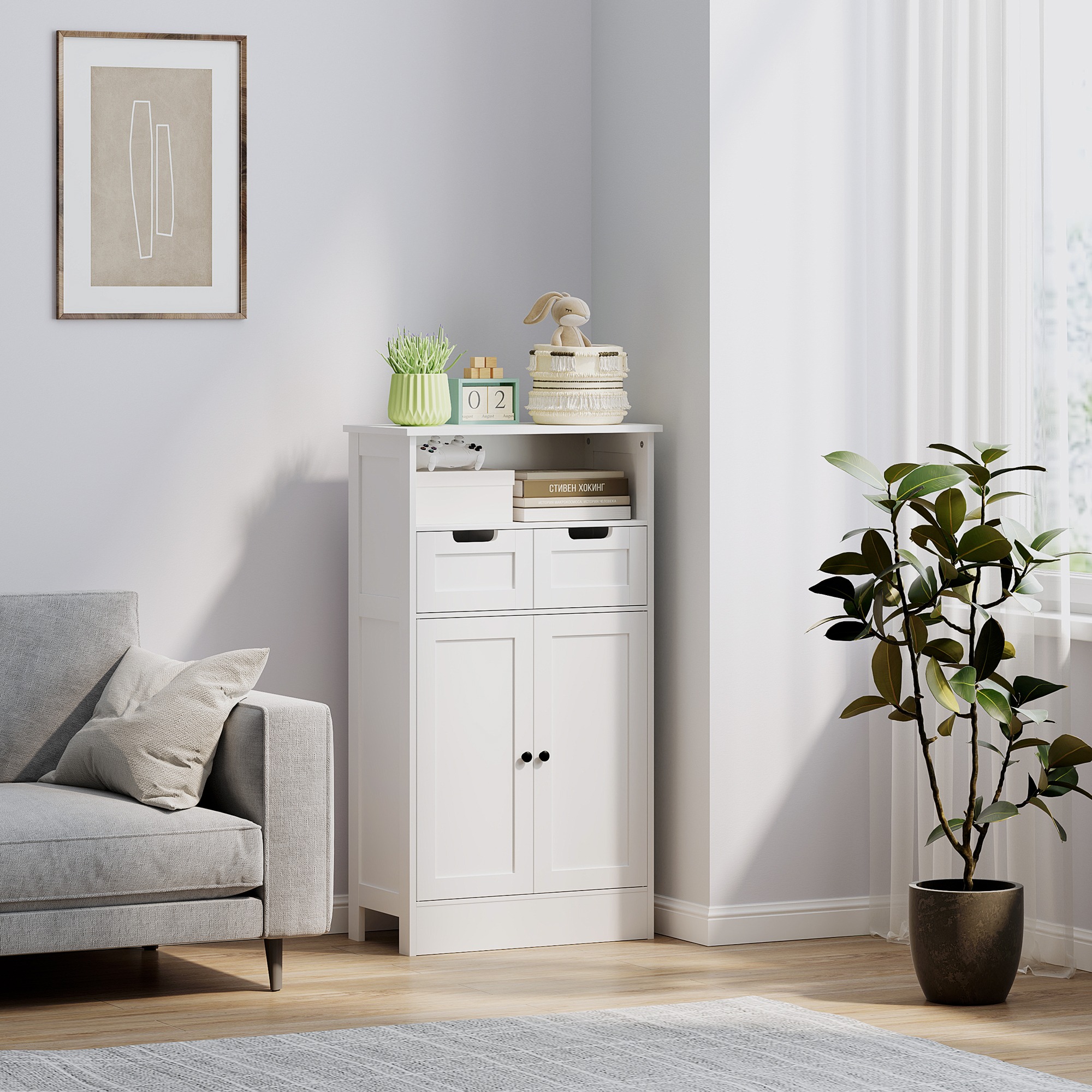 - ✔ Gemaakt van E1-kwaliteit MDF voor langdurig gebruik van de opbergkast