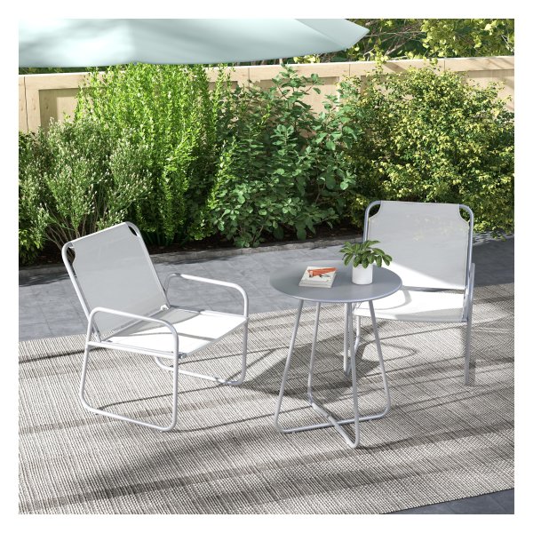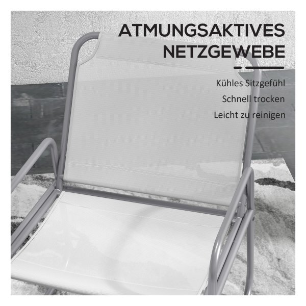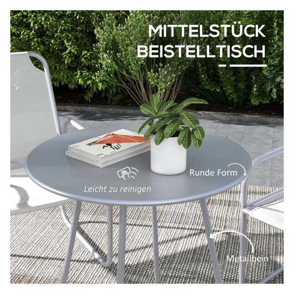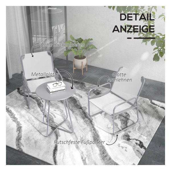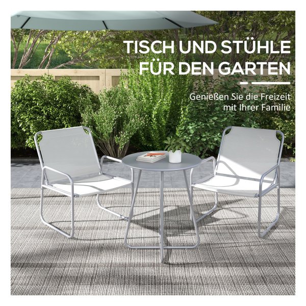 Drie-delige tuinset met stoelen en tafel, ideaal als balkonmeubelset voor tuin of terras. Ademend materiaal, robuust stalen frame en eenvoudige montage. Gezellige zit- en ontspanningservaring in de buitenlucht.