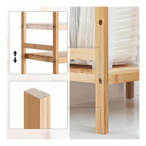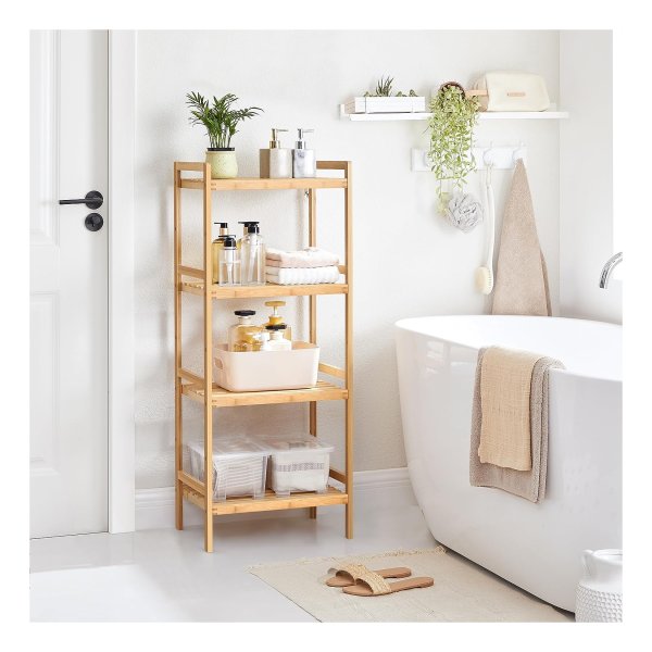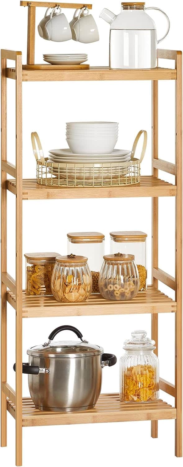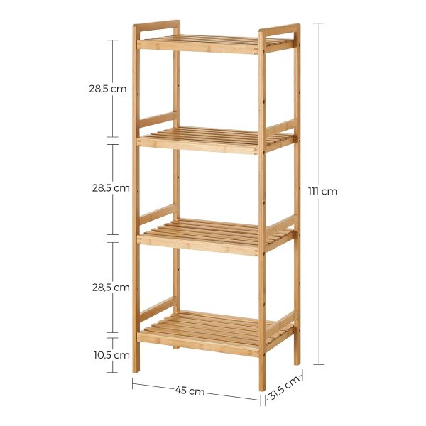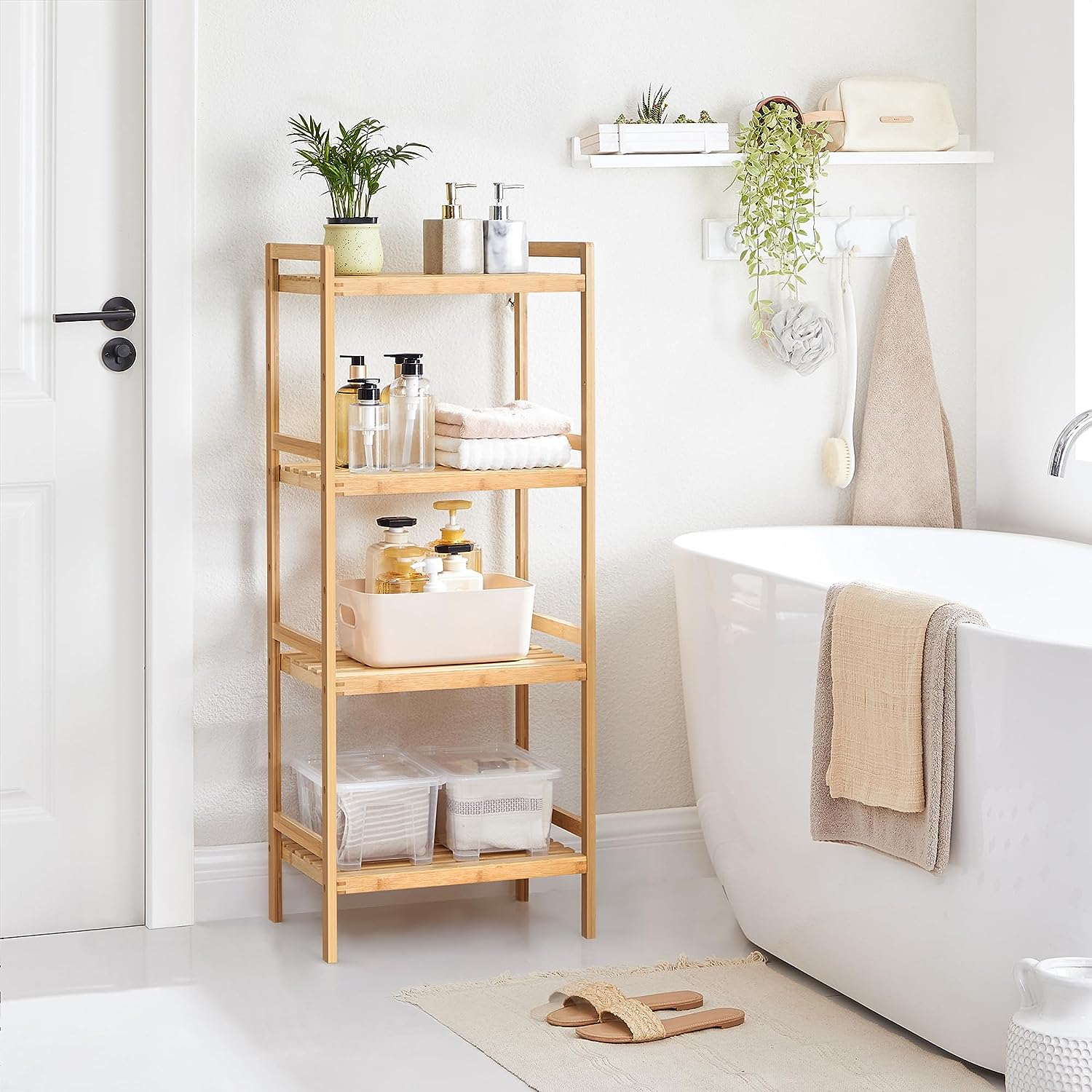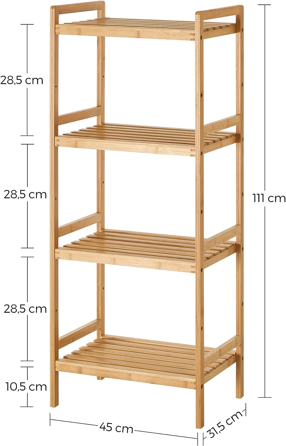 Bamboe rek met 4 niveaus, opbergkast voor badkamer, boekenkast, voor woonkamer, slaapkamer, balkon, houtkleur