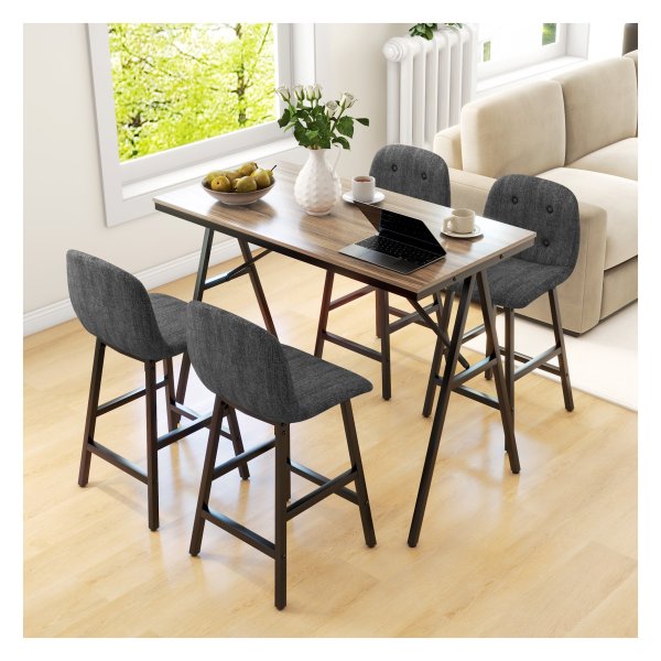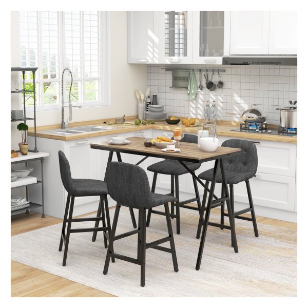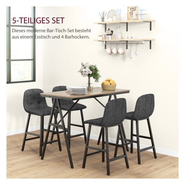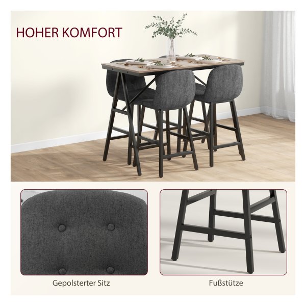 Das 5-delige -Bartischset biedt een stijlvolle oplossing voor gezellige maaltijden en spelavonden. Met comfortabele zitplaatsen, een robuuste constructie en een modern industrieel design. Ideaal voor kleine ruimtes, inclusief tafel en 4 stoelen.