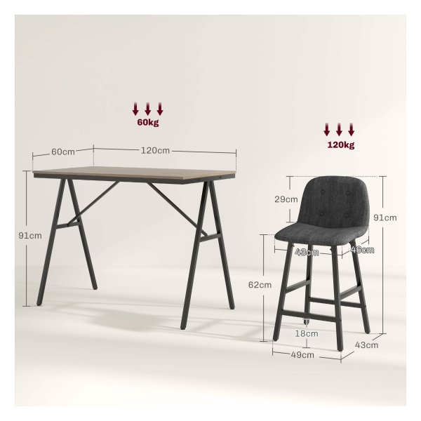 - ✔ Afmetingen: 120L x 60B x 91H cm (Tafel), stoelen variëren in afmetingen
